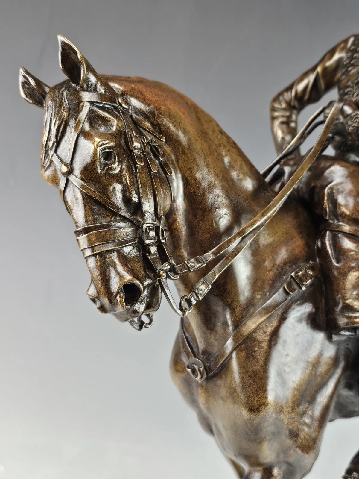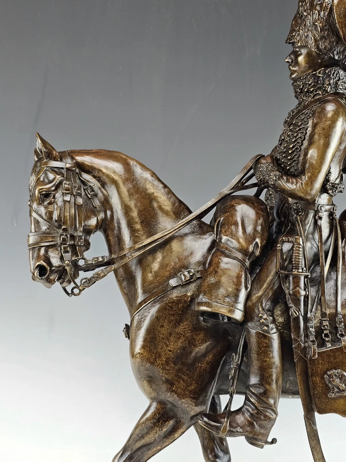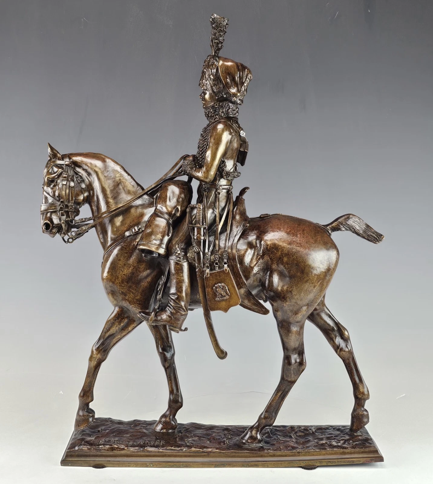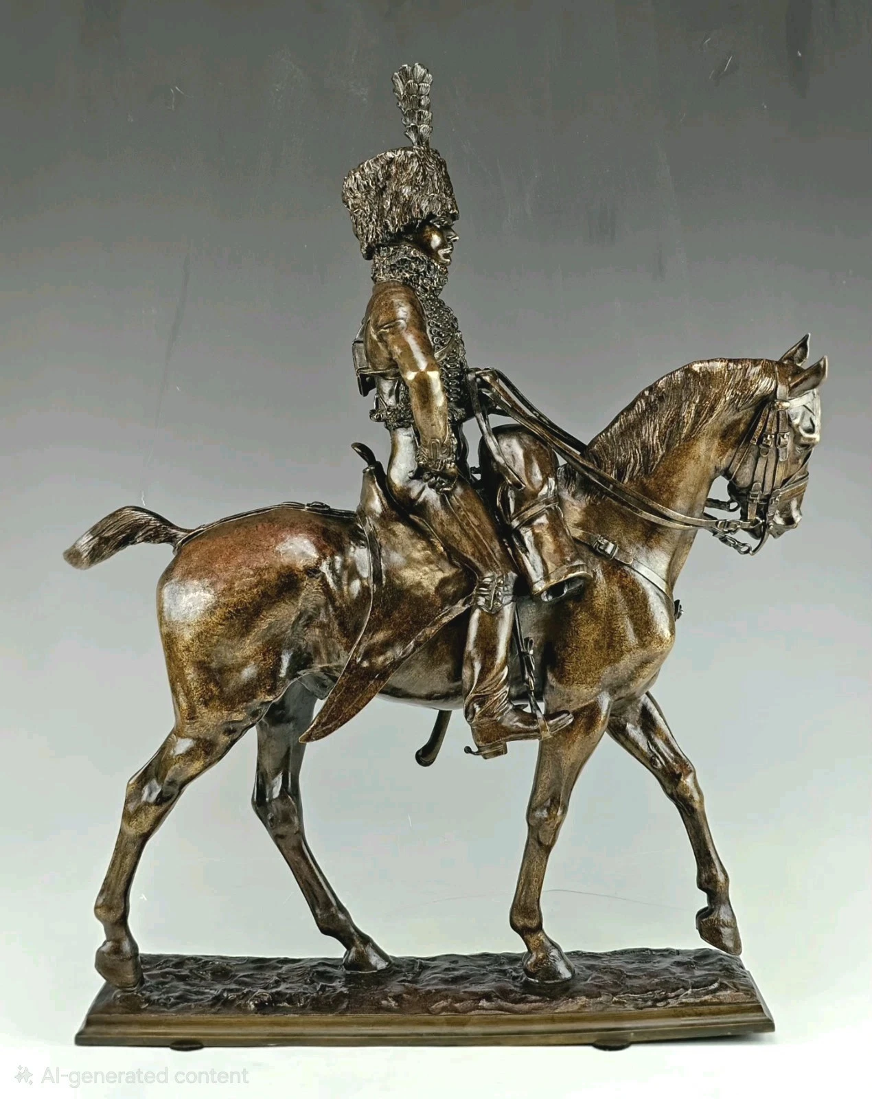 19th-century Patinated Bronze Sculpture of Hussar on Horseback by famous artist Pierre Nicolas Tourgueneff ( 1853-1912 ).