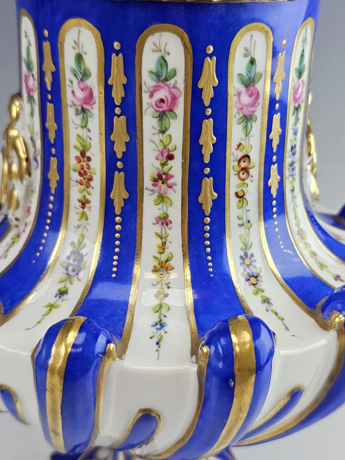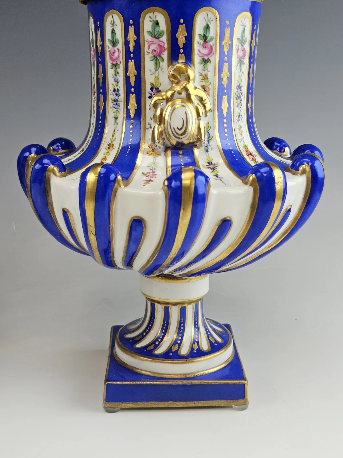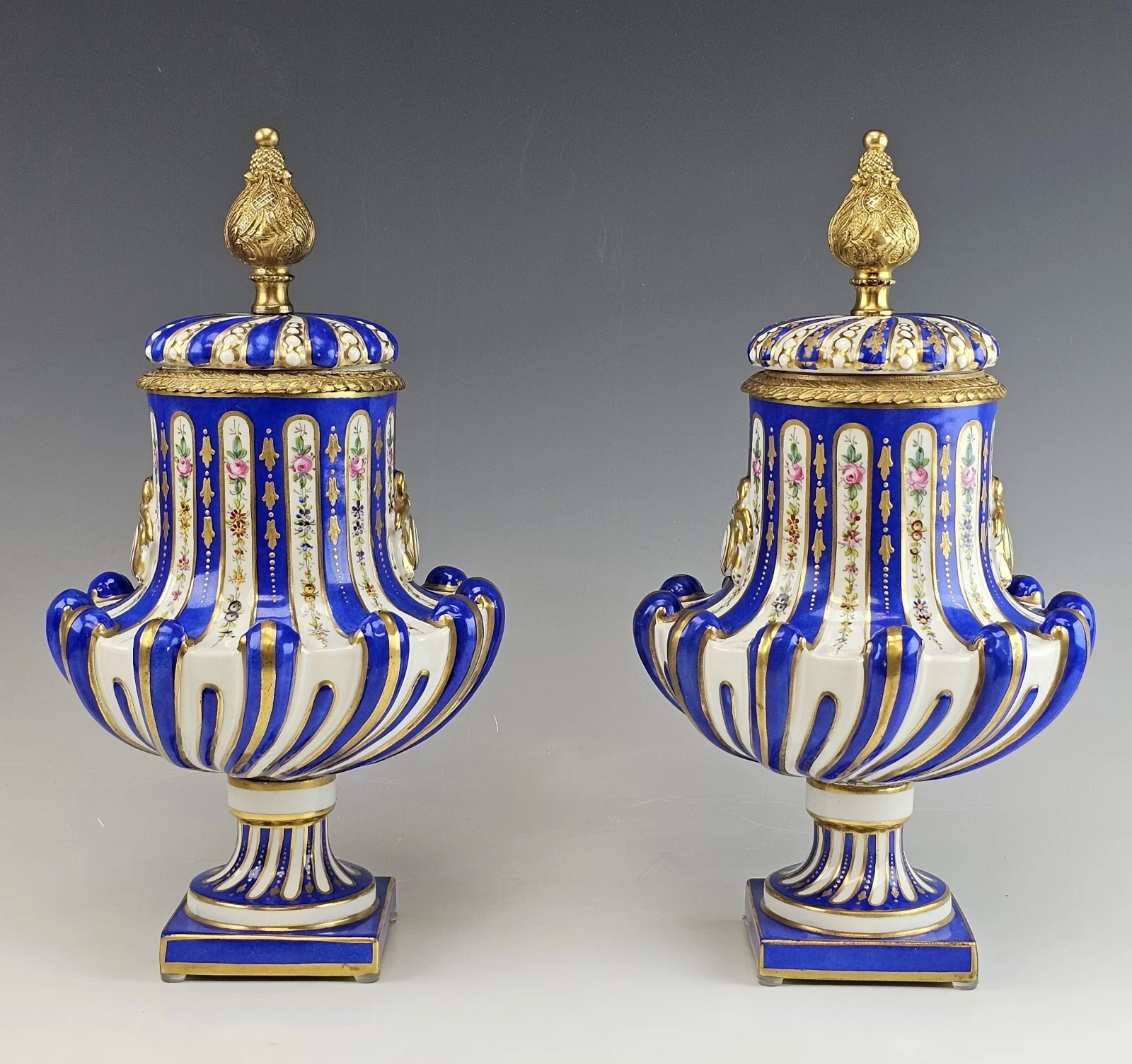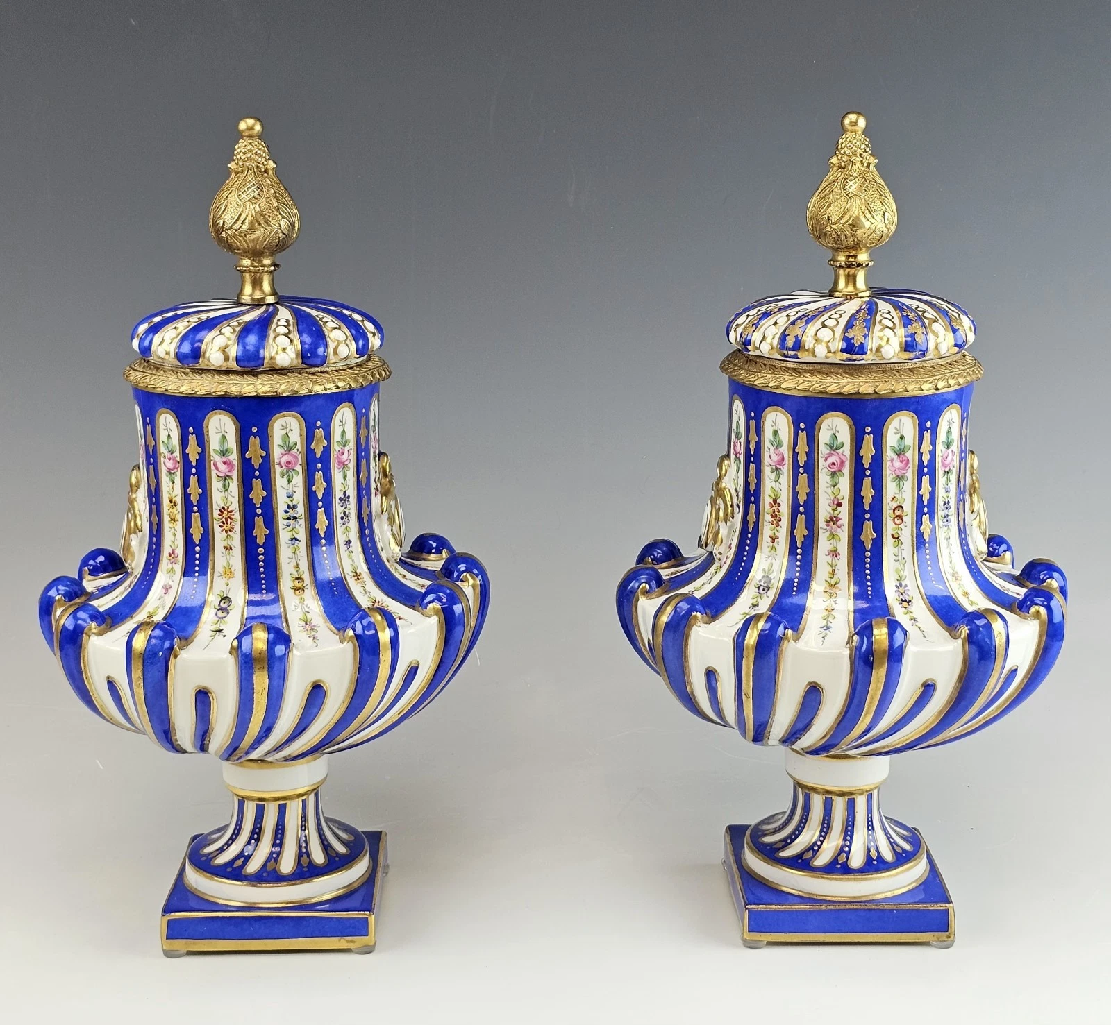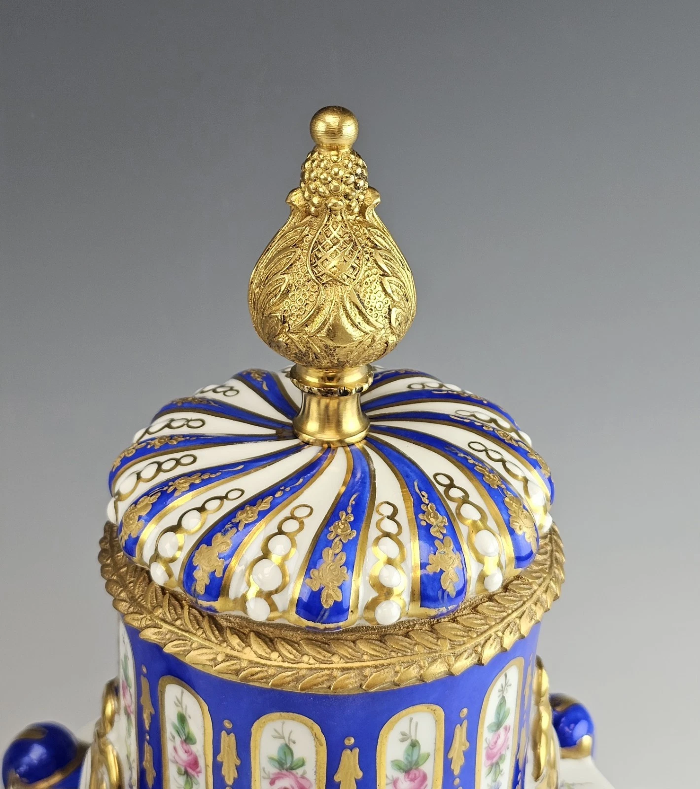 Beautiful 19th-century French Pair of Sevres Style Porcelain Gilt Bronze Hand Painted Urns, Vases.