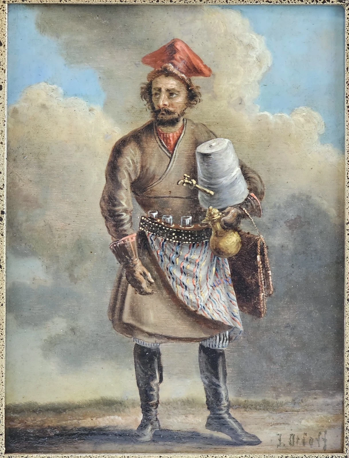 19th-century Russian Painting Oil on Tin-plate signed J.Orloff ( 1815 - 1861 )
