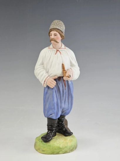 19C Russian Gardner Porcelain Figurine of The Ukrainian Peasant.