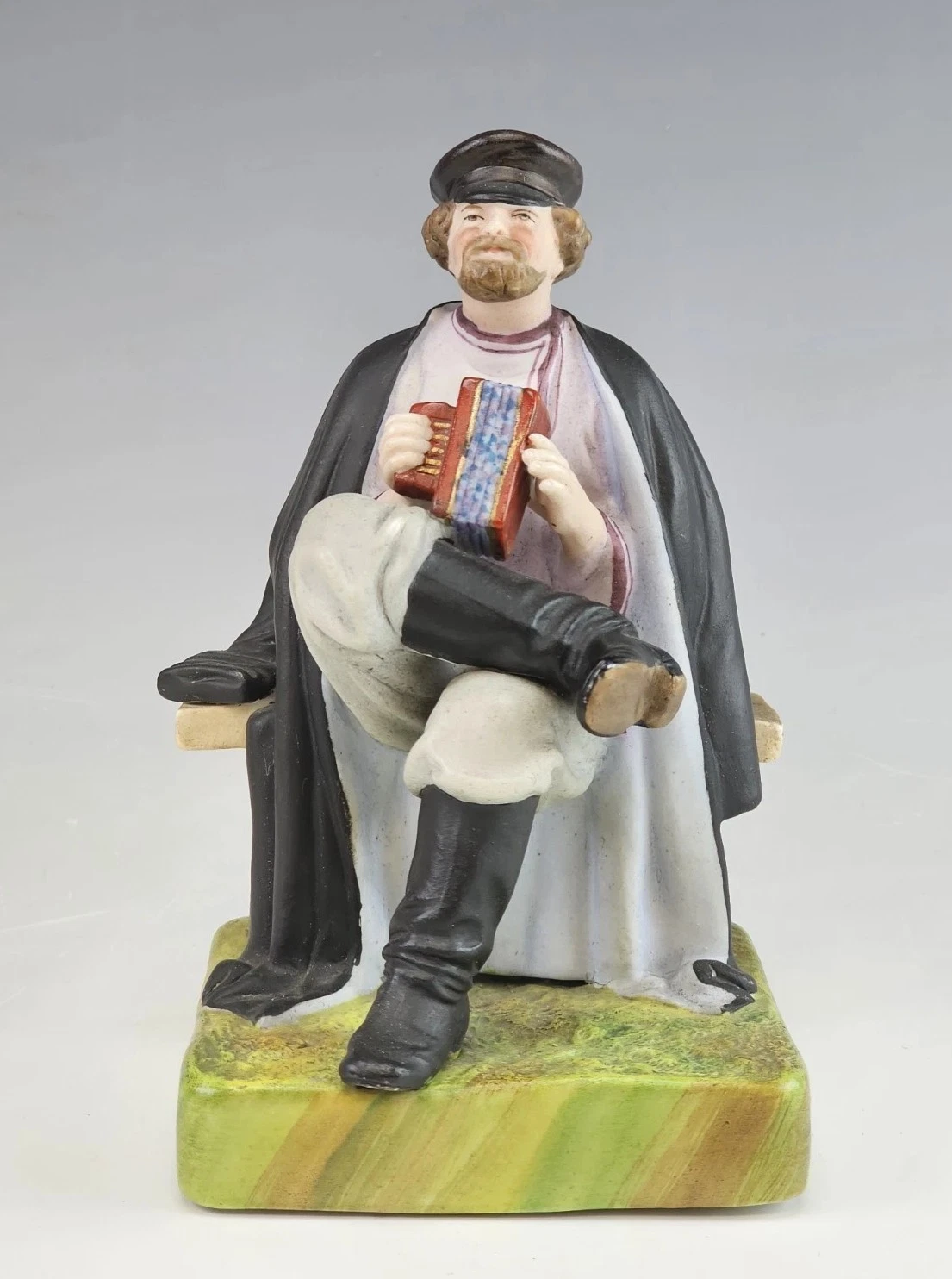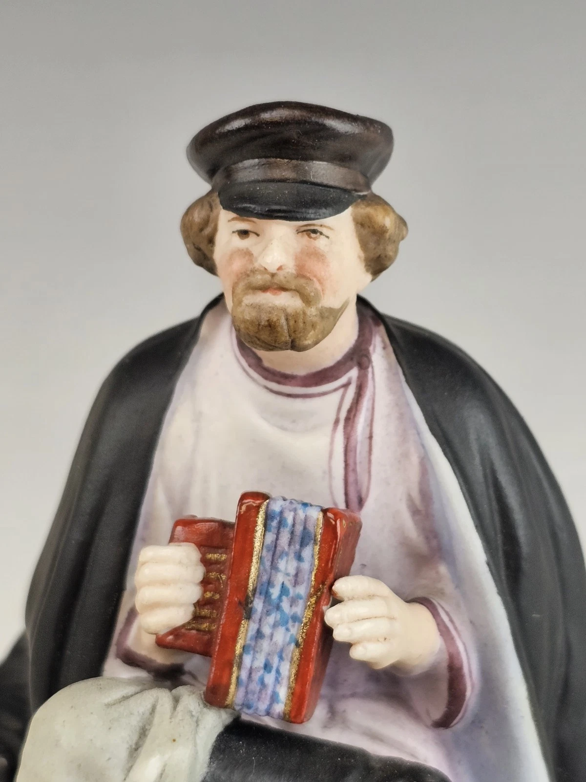 19C Russian Gardner Porcelain Figurine of The Accordion Player.