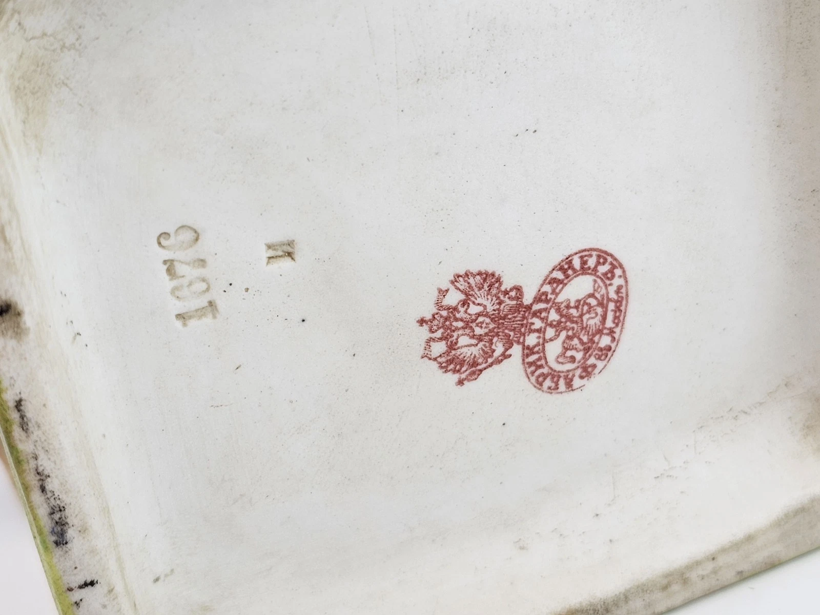 Size: 7" ( 18 cm ) height, 4 1/4" ( 11 cm ) depth, 4 1/8 " ( 10,5 cm ) width. Marked on the underside.