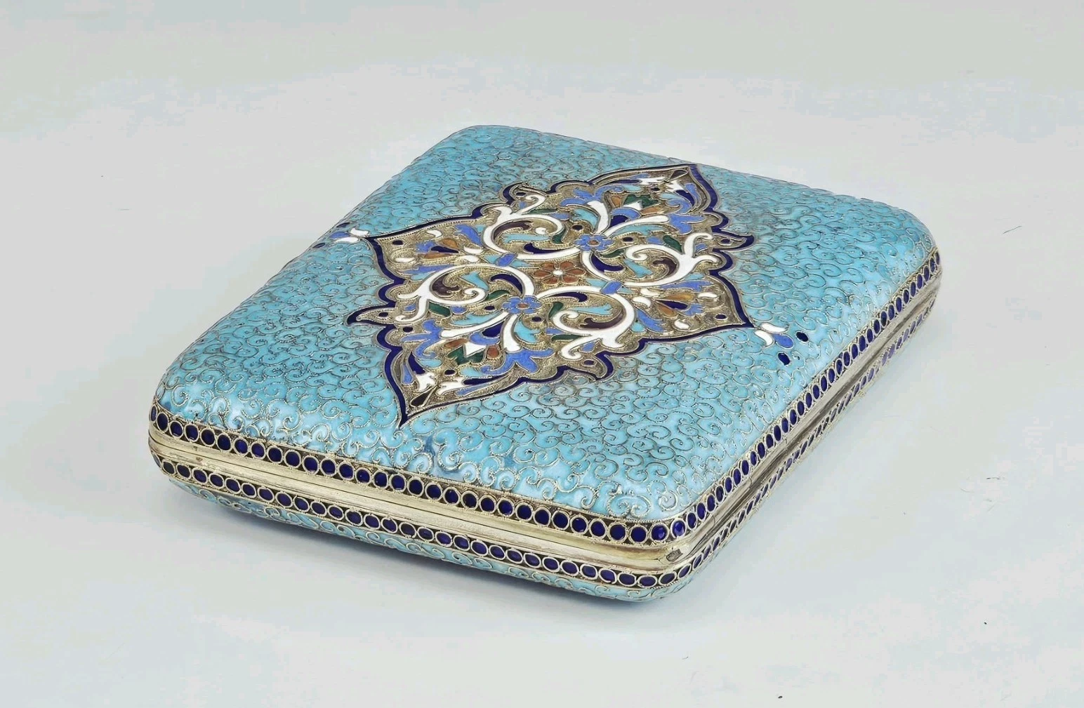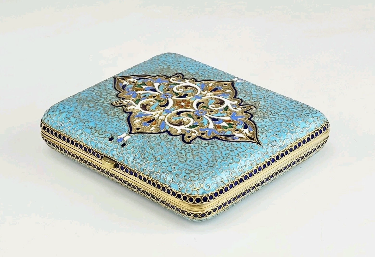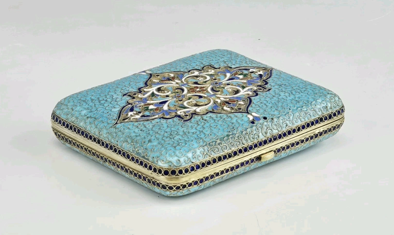 Large 19th-century Russian Gilt Silver Cloisonne Enamel Cigarette Case.