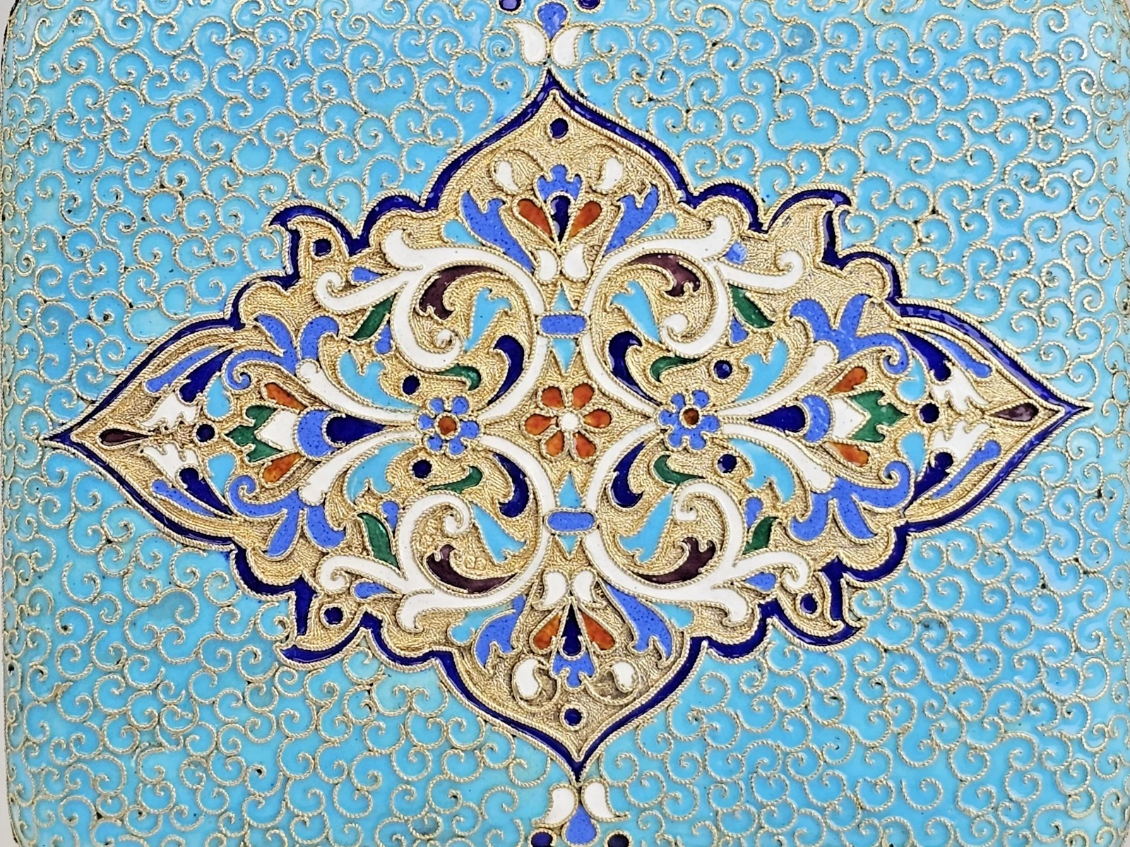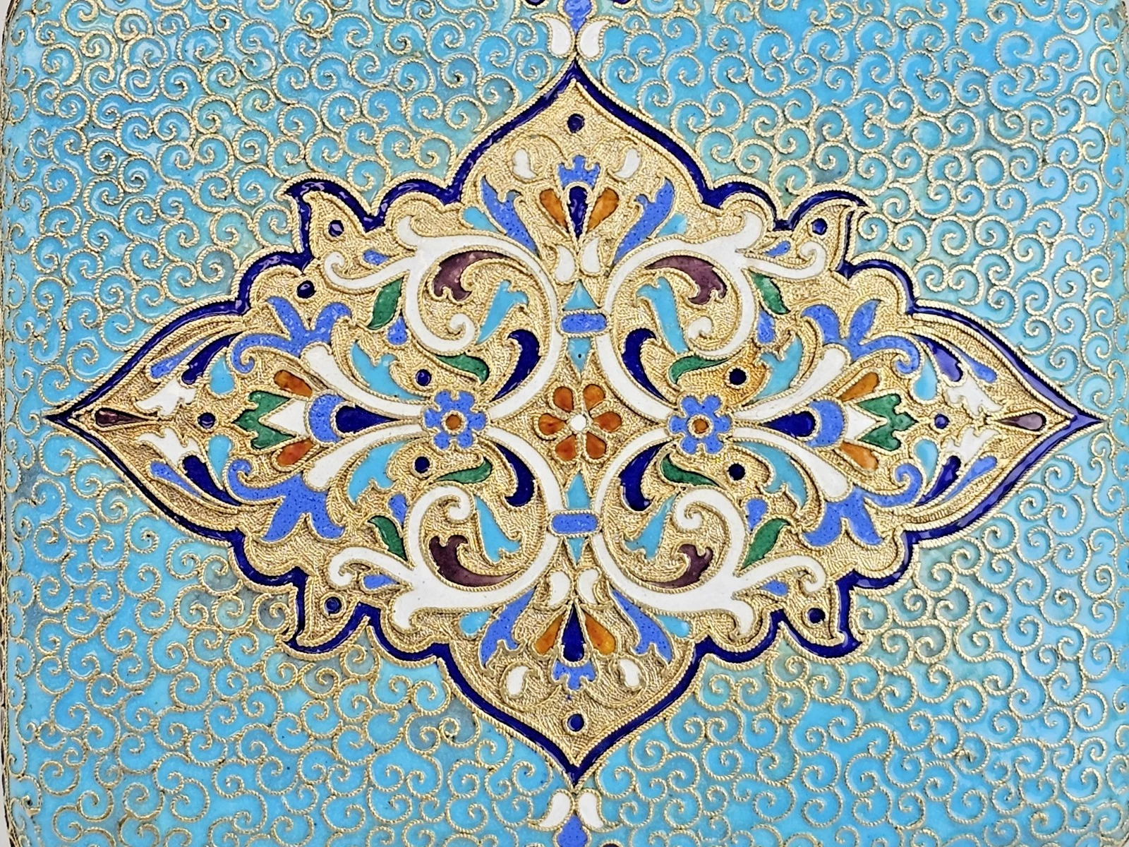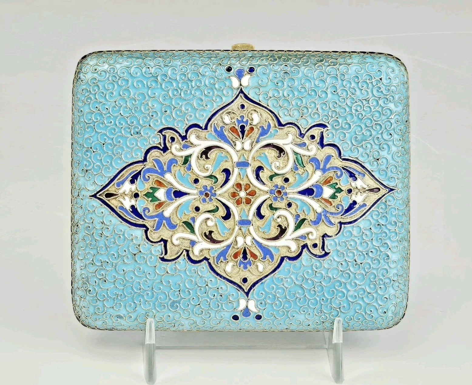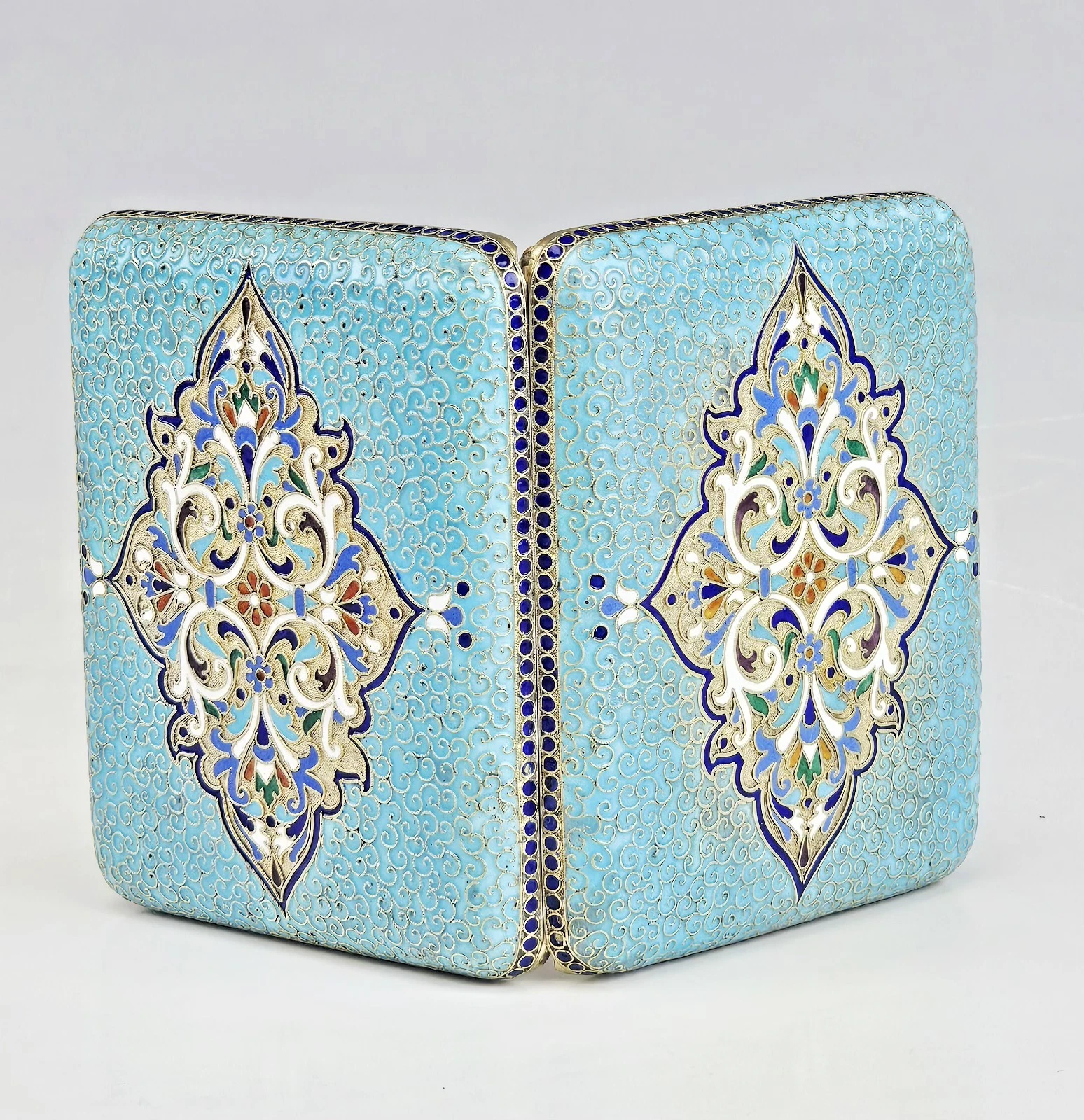 Large 19th-century Russian Gilt Silver Cloisonne Enamel Cigarette Case.