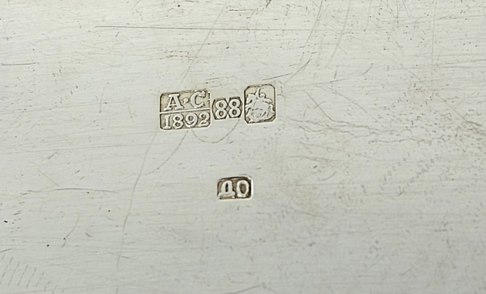 Hallmarked on the underside for Moscow, 1892, 88, assayer initials A.C, makers initials DO ( Dmitri Osipov )