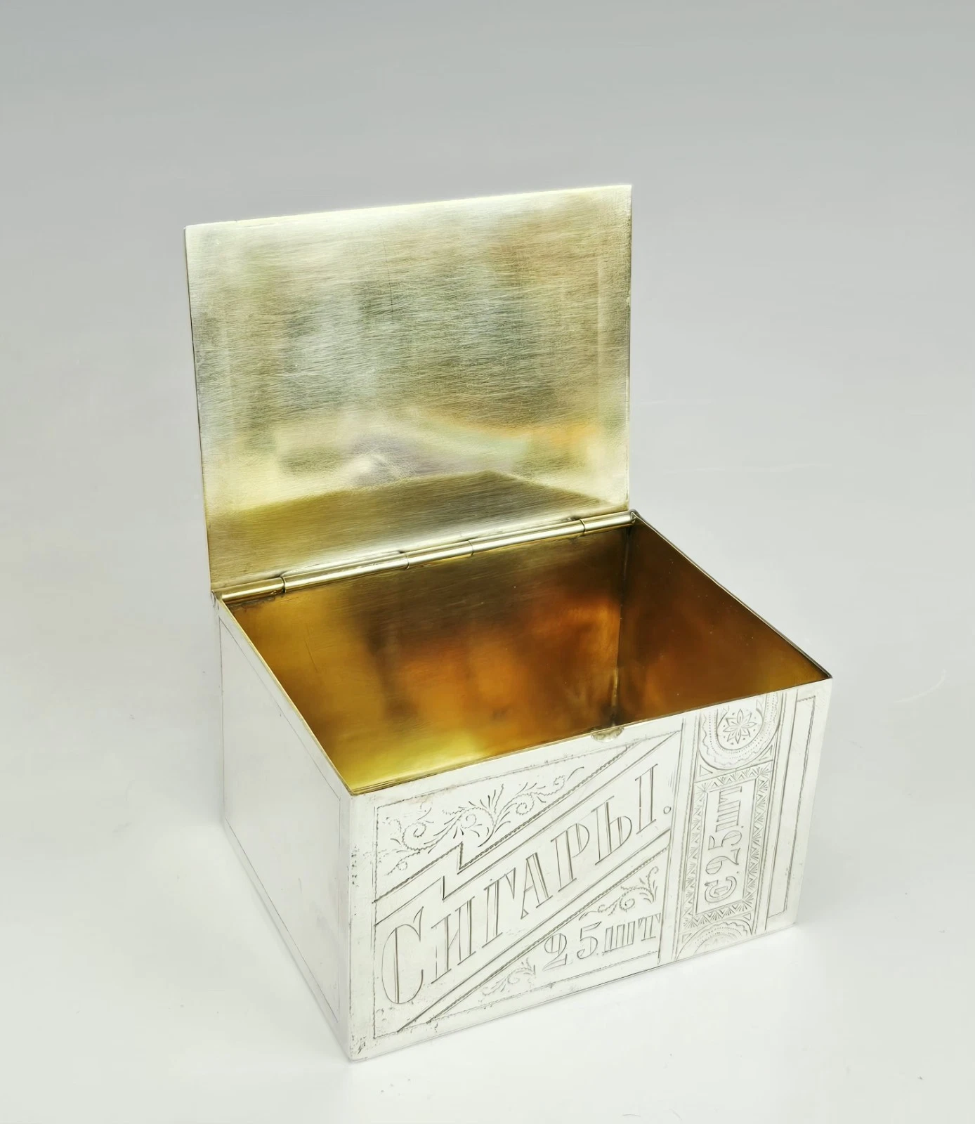 Goldwash interior. Hand engraved with Imperial Double headed eagle, Cigars 25 pieces.