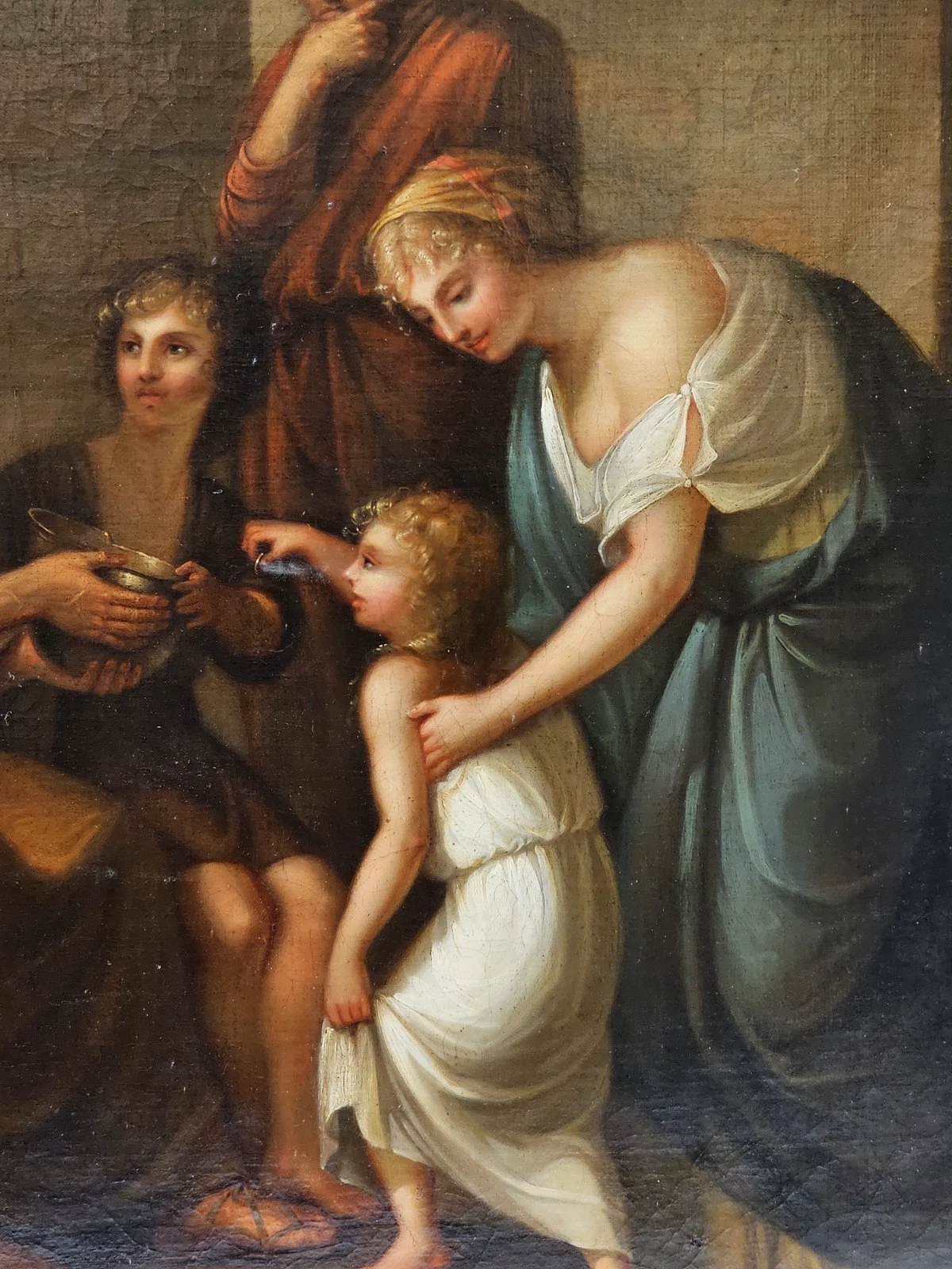 Beautiful antique Neoclassical oil painting on canvas, dating to approximately circa 1790–1820, likely French or Italian academic school.