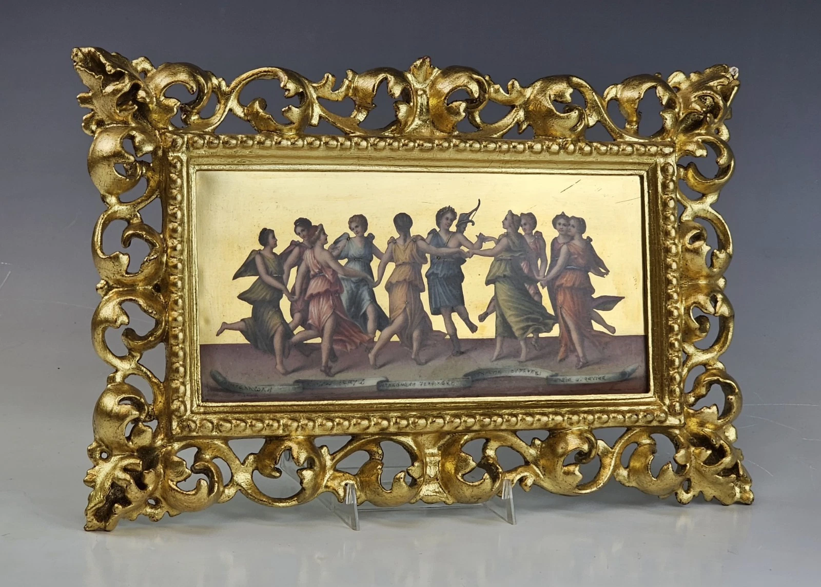 Size: 4 3/4" x 9 3/4" ( 12 x 24,8 cm ) plaque, 9 1/4" x 14" ( 23,5 x 35,5 cm ) frame.