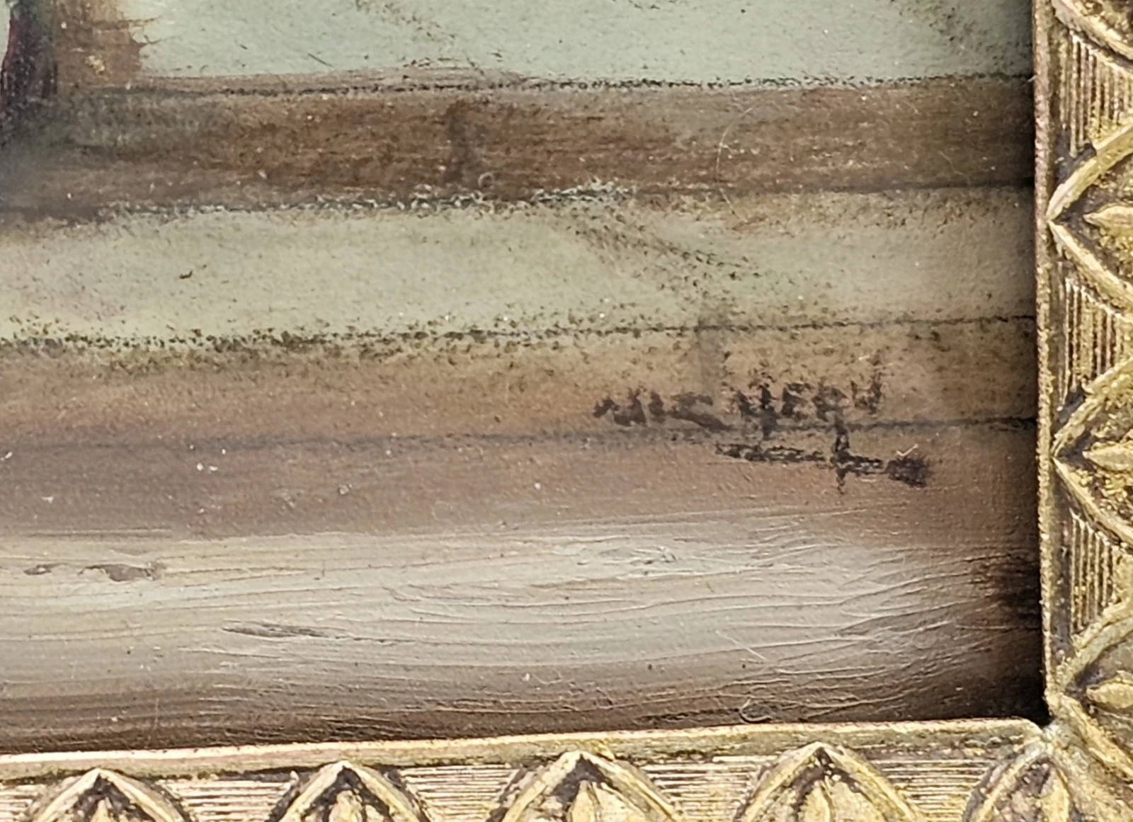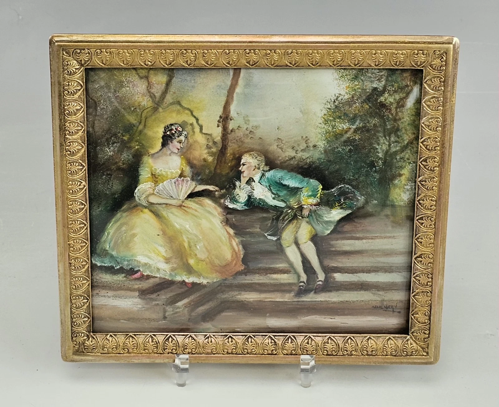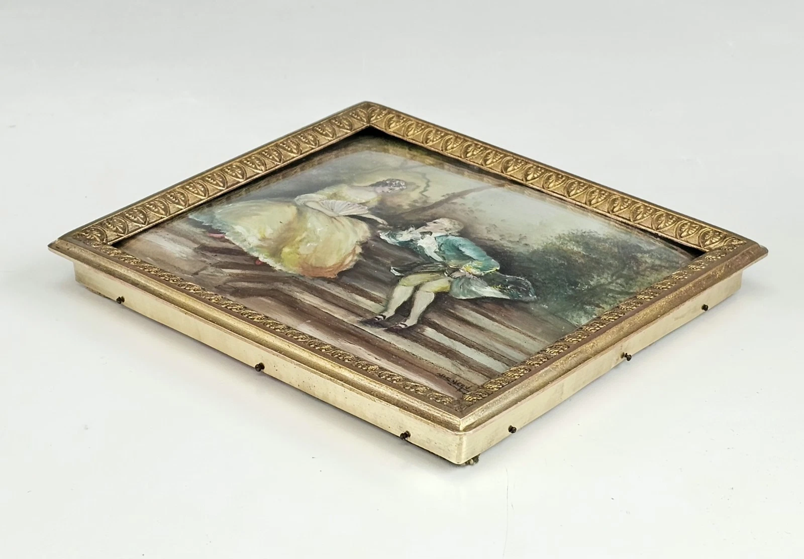 The smaller painting is housed in a complementary gilt bronze decorative frame with classical detailing.