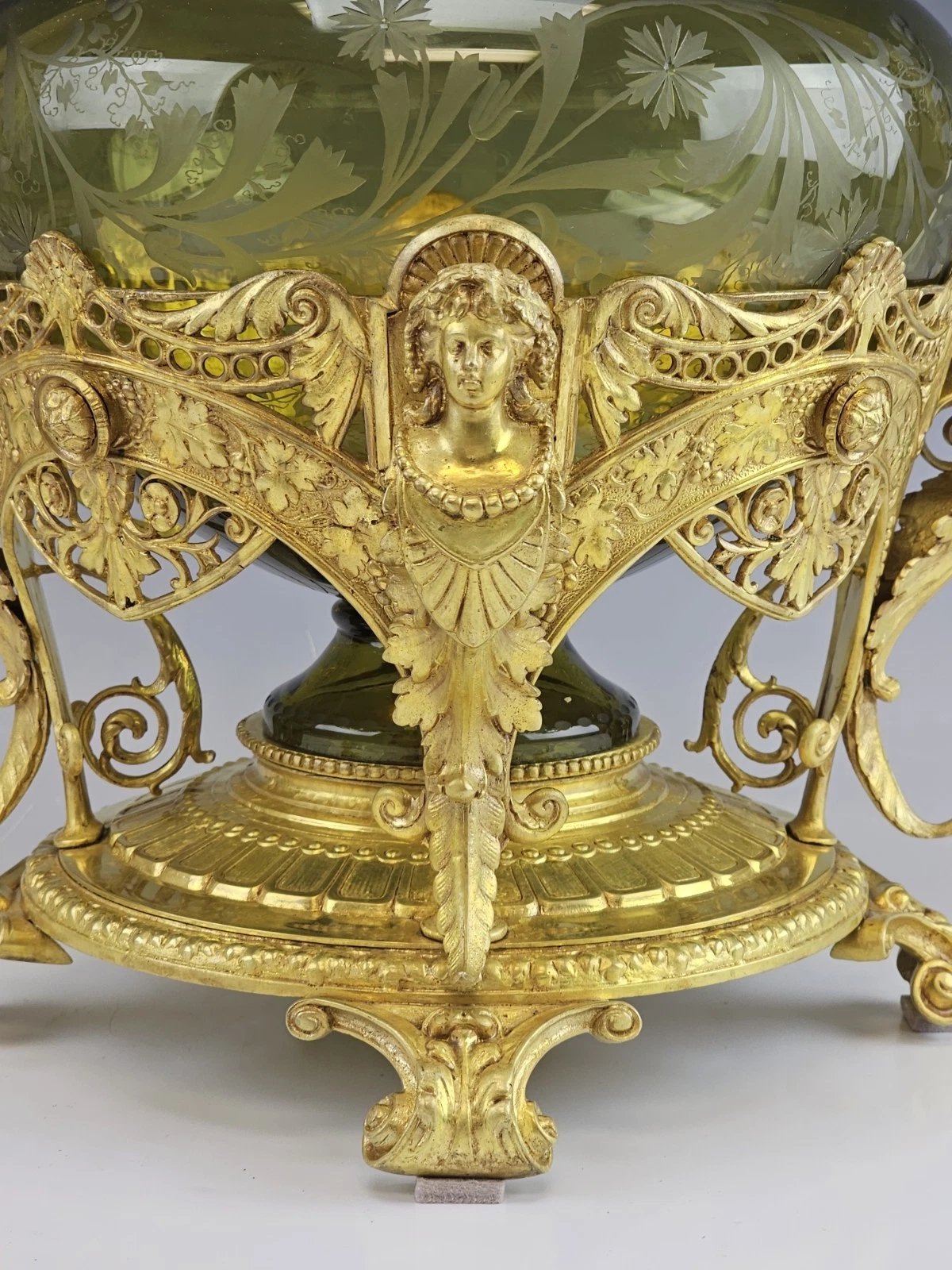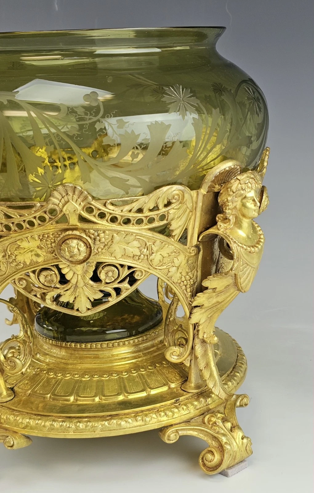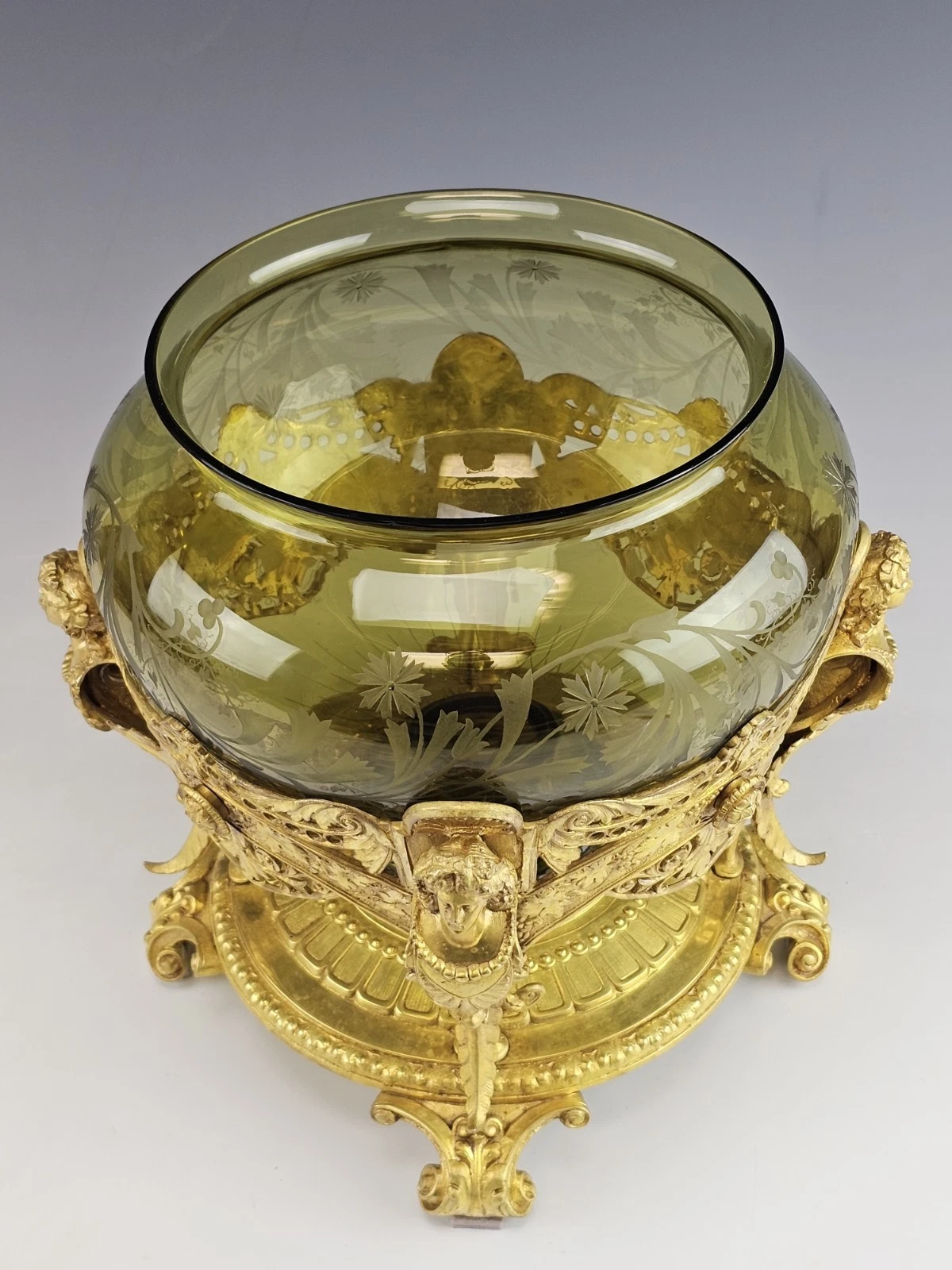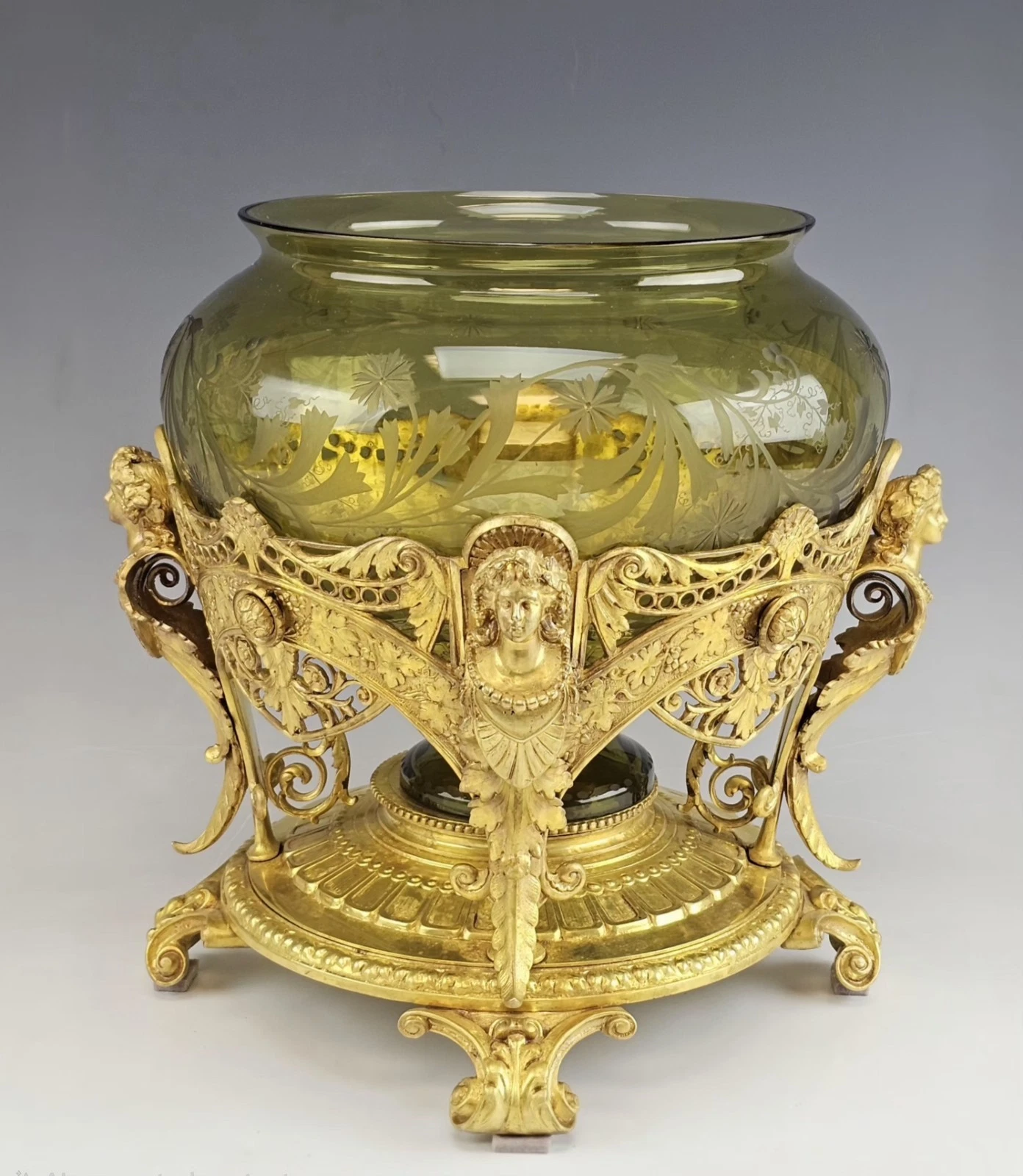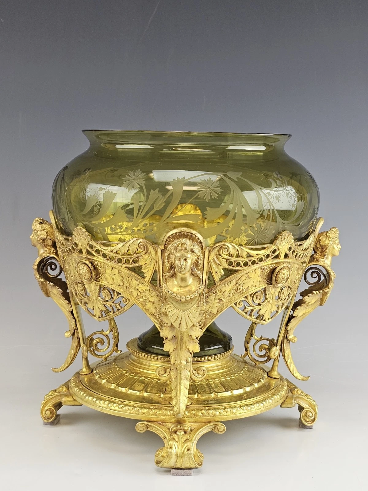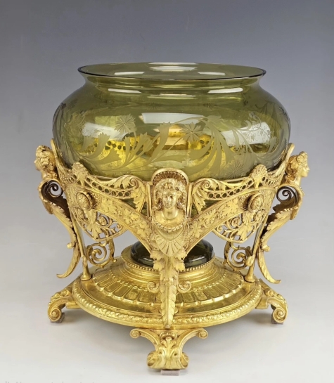 Beautiful 19th-century Antique French Gilt Bronze and Etched Glass Centerpiece, Bowl in Art Nouveau style.