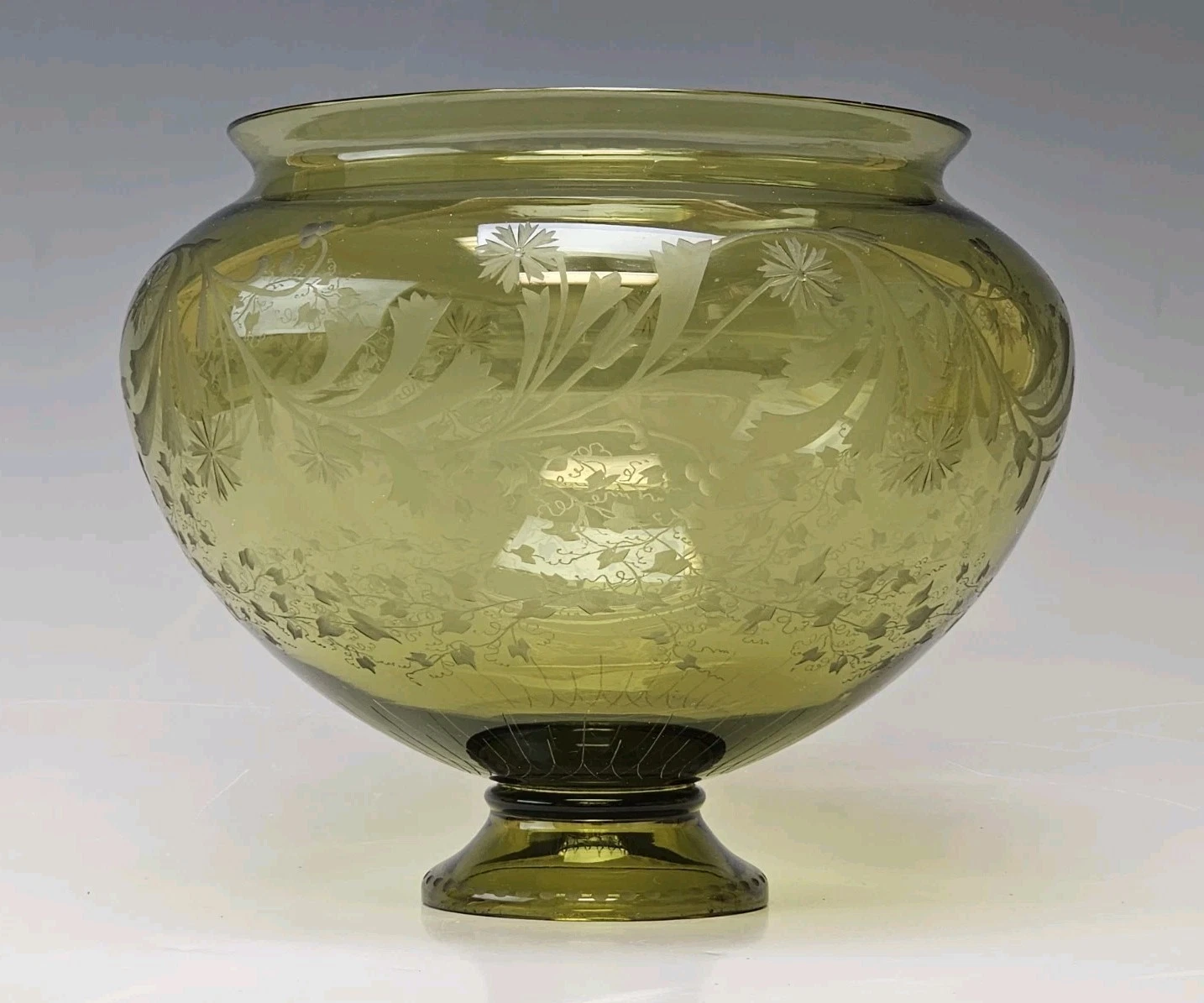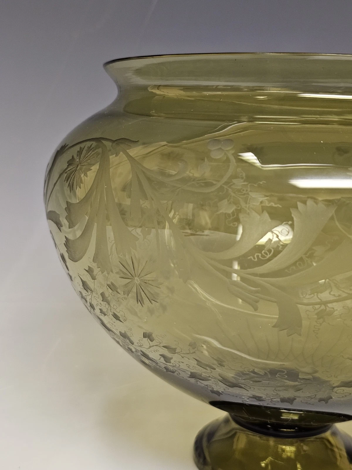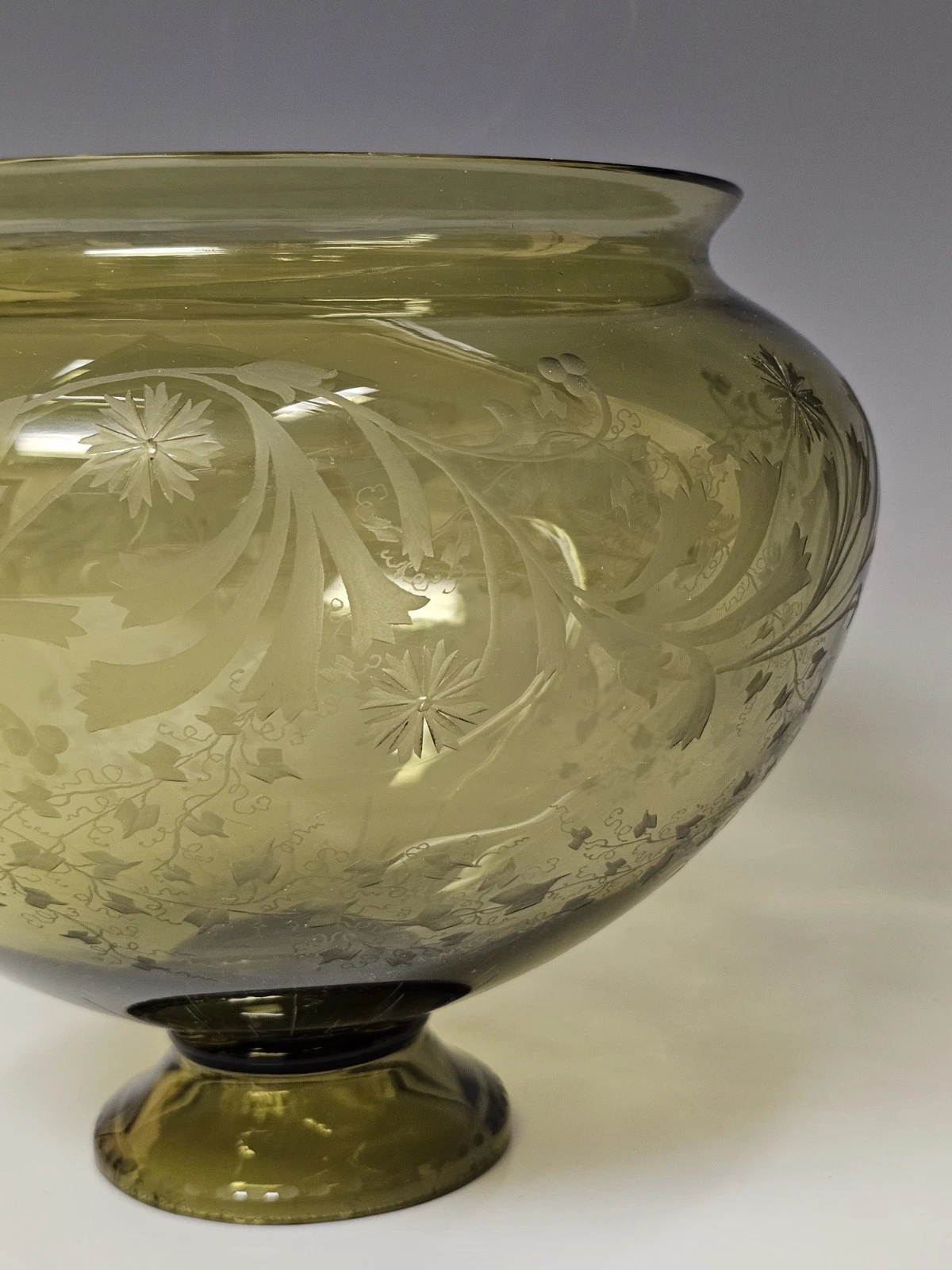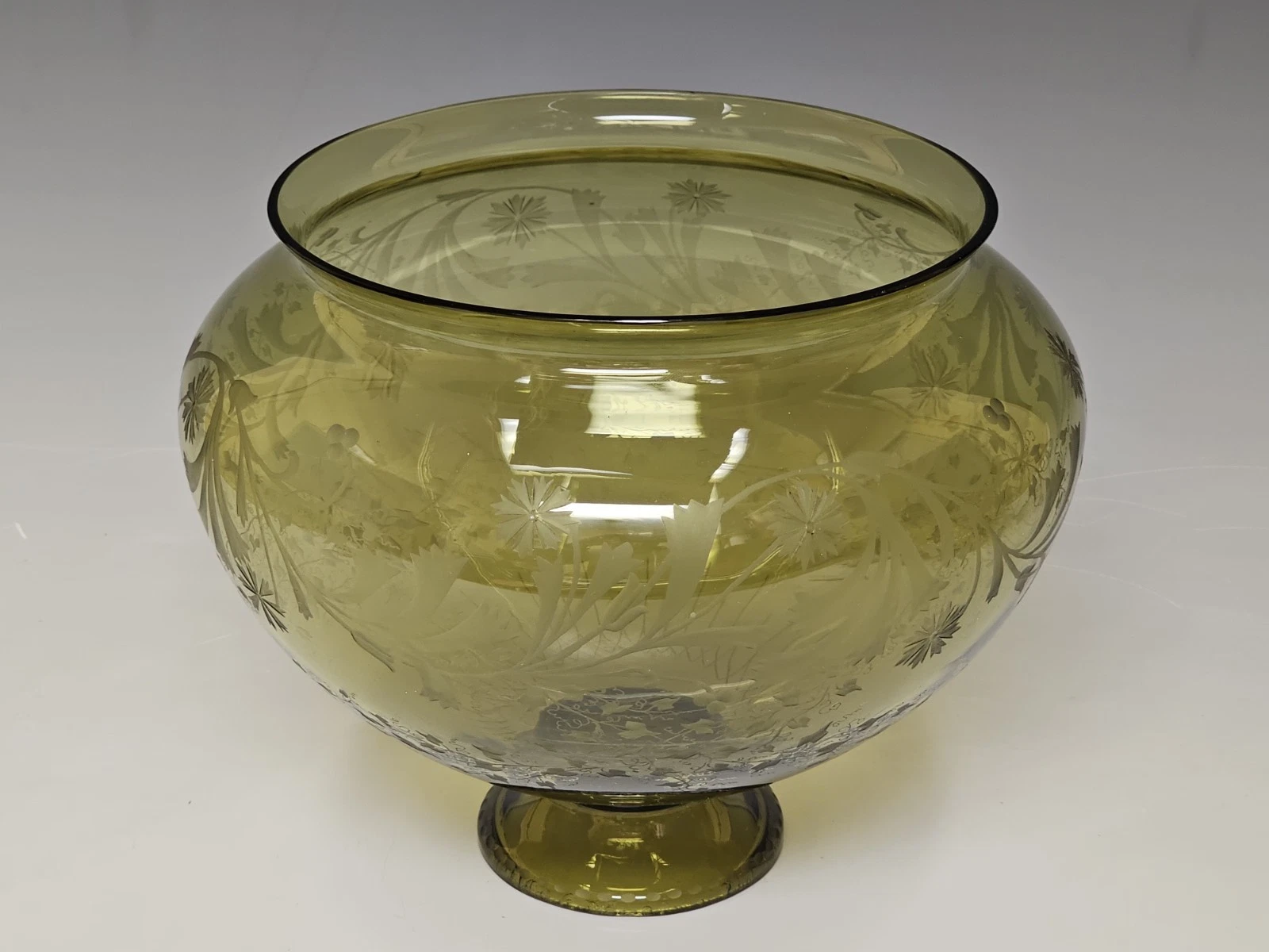 Original greenish etched glass decorated with floral ornaments. Possibly Bohemian.