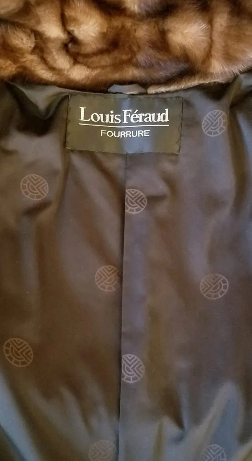 One button closure outside and hooks inside. Silk linning with Louis Ferraud logo.