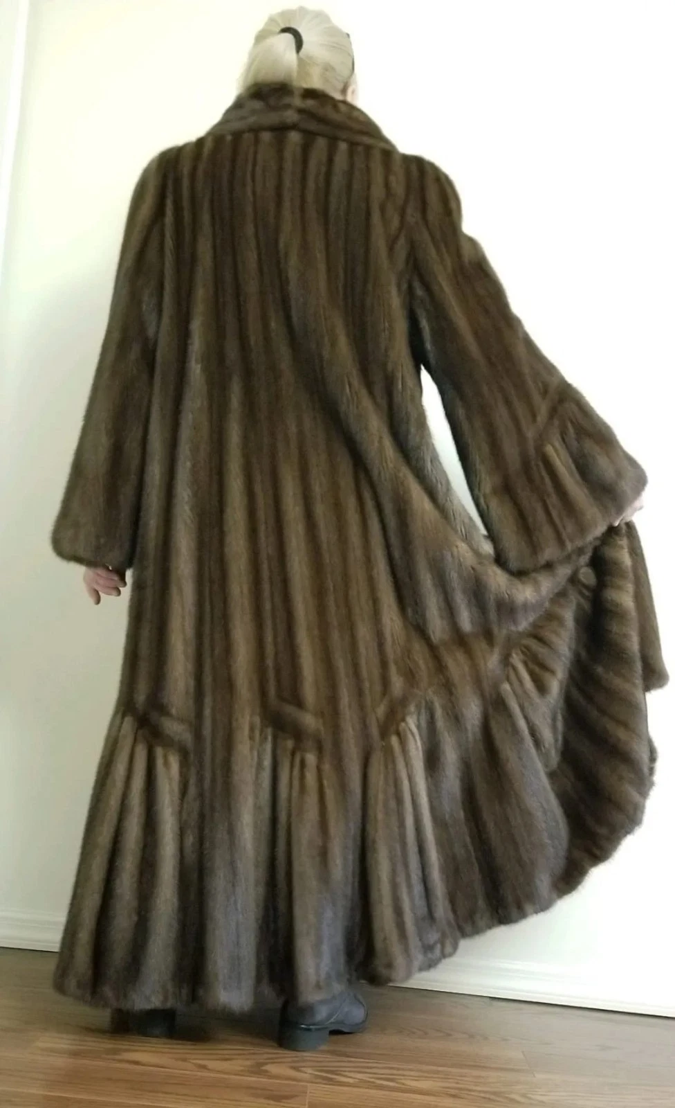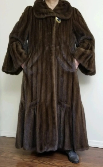 Beautiful French Louis Ferraud woman's coat made of American Natural Wild Mink . Brown color.