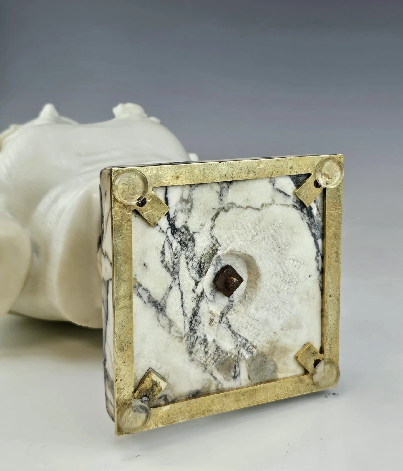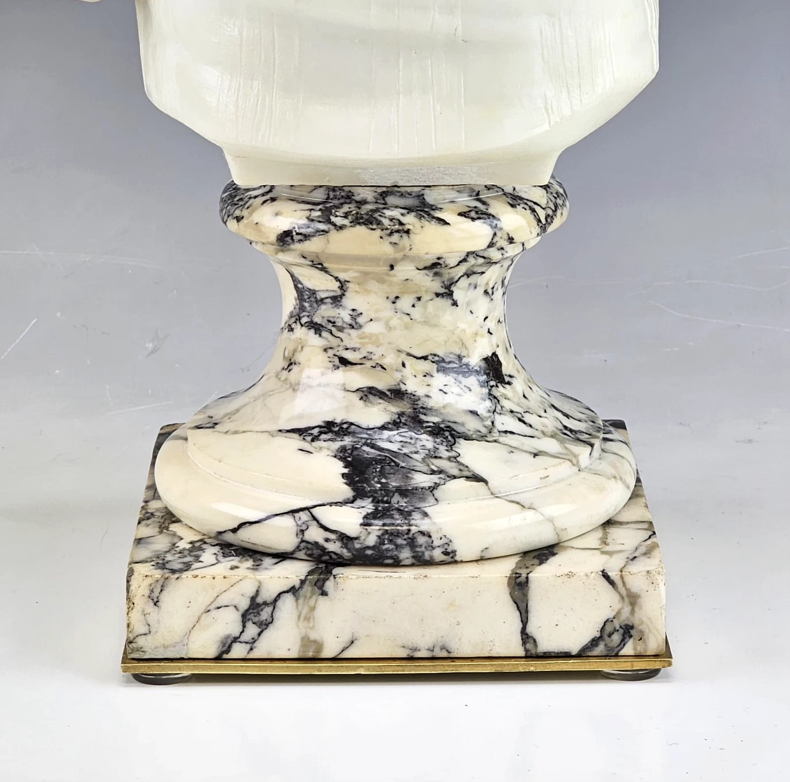 The bust on original white and grey marble pedestal with gilt bronze mounted base.