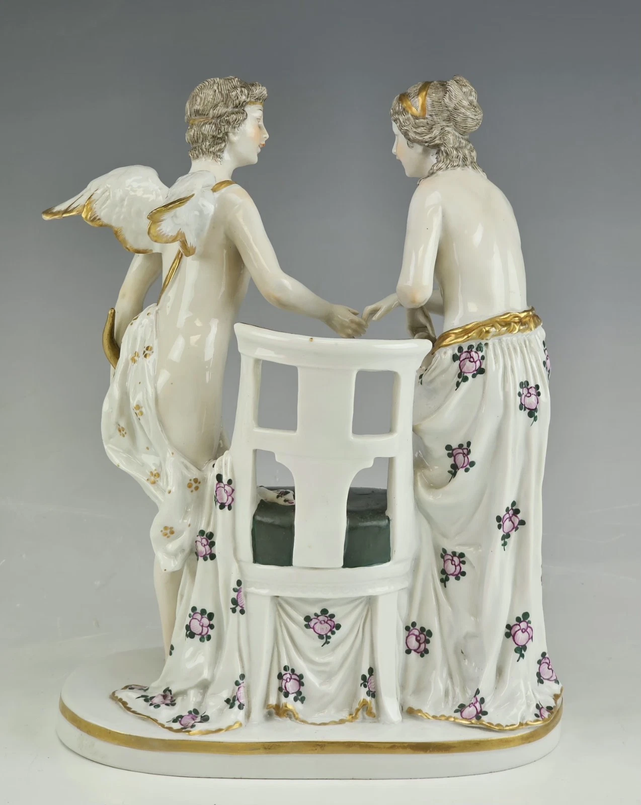 The figurine depicting young woman and Cupid. Probably Cupid and Psyche.