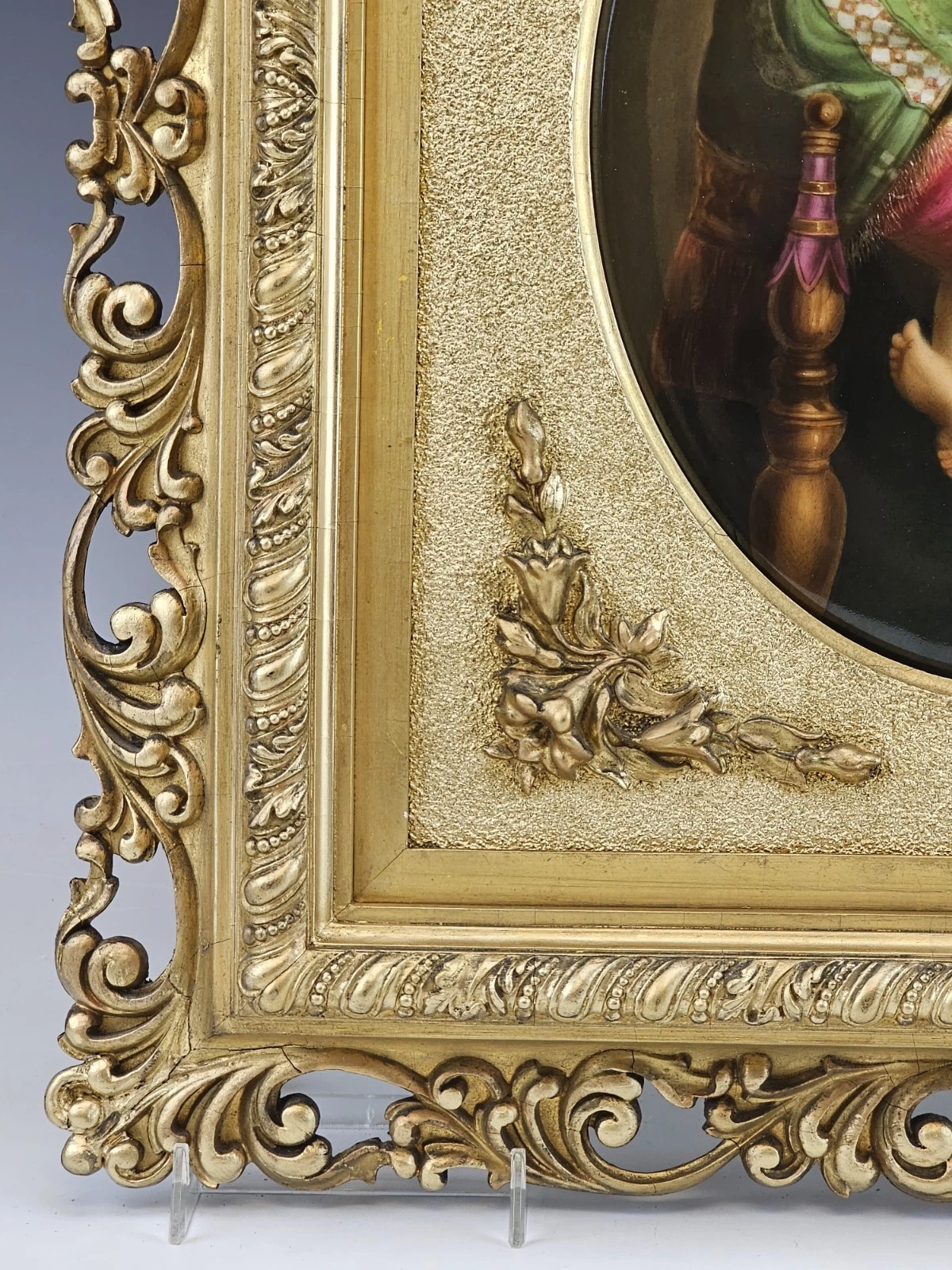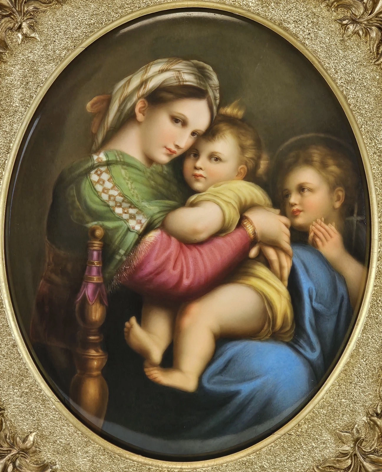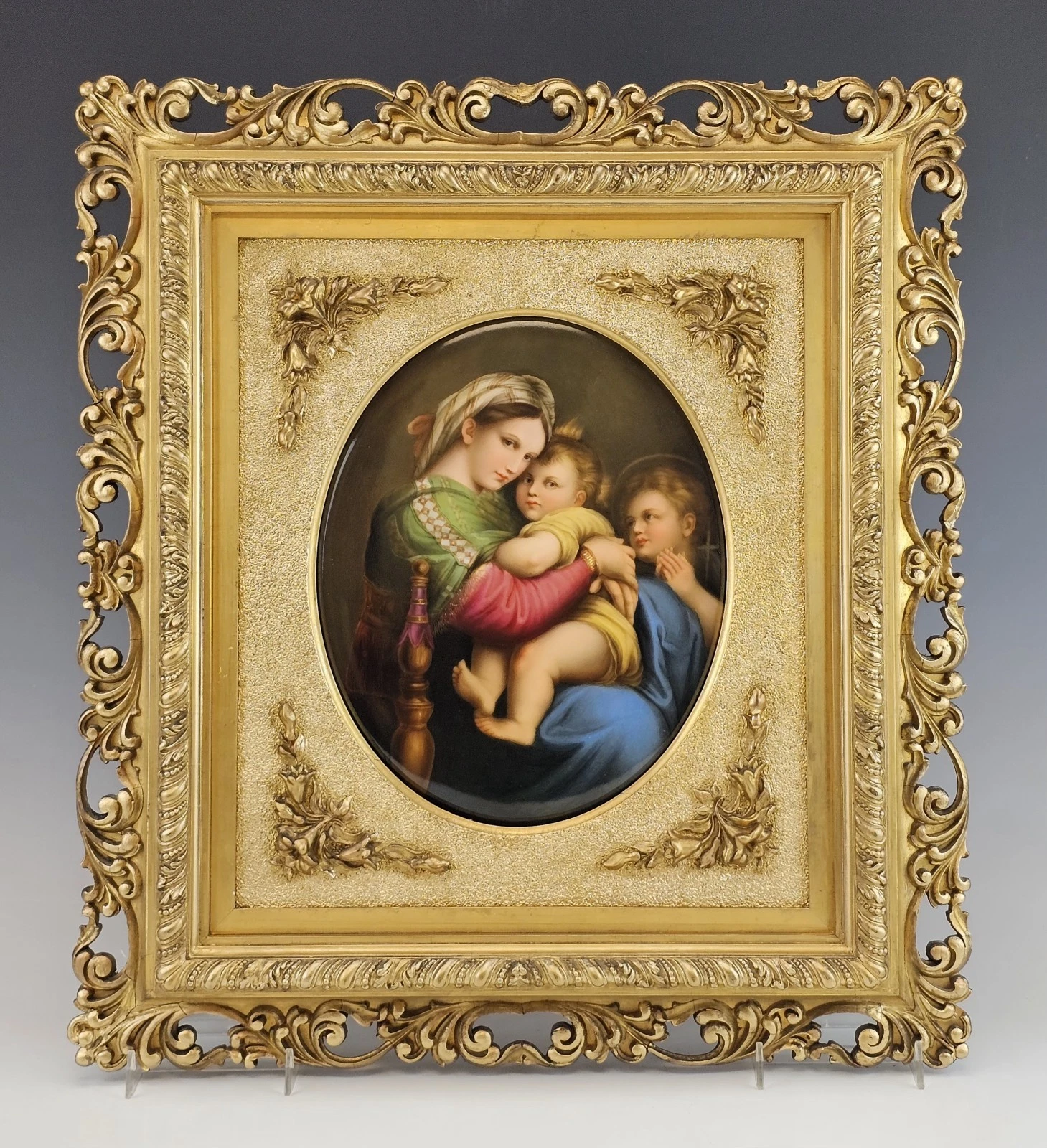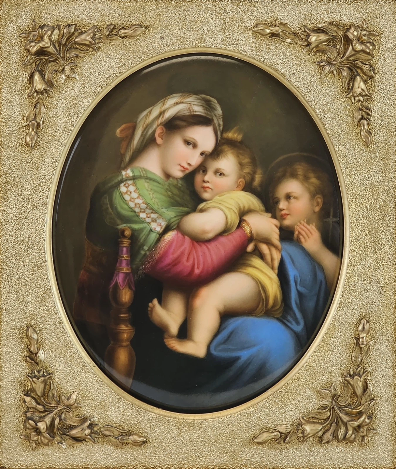 Beautiful 19th-century German KPM porcelain plaque, after Raphael ( Italian, 1483-1520 ) Madonna Della Seggiola. Impressed KPM with scepter mark, hand ink numbered on verso .