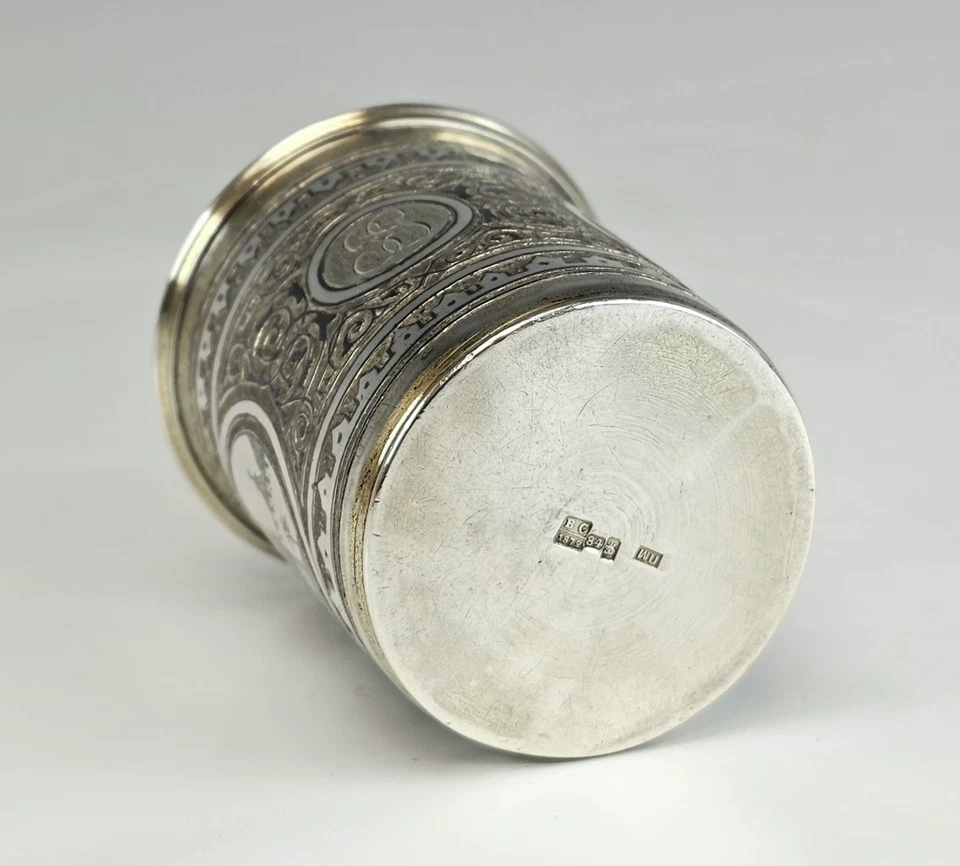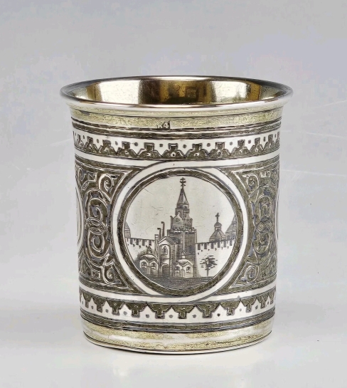 A finely crafted Imperial 19 century Russian silver-gilt beaker with niello decoration in the Neo-Russian / Pan-Slavic taste.