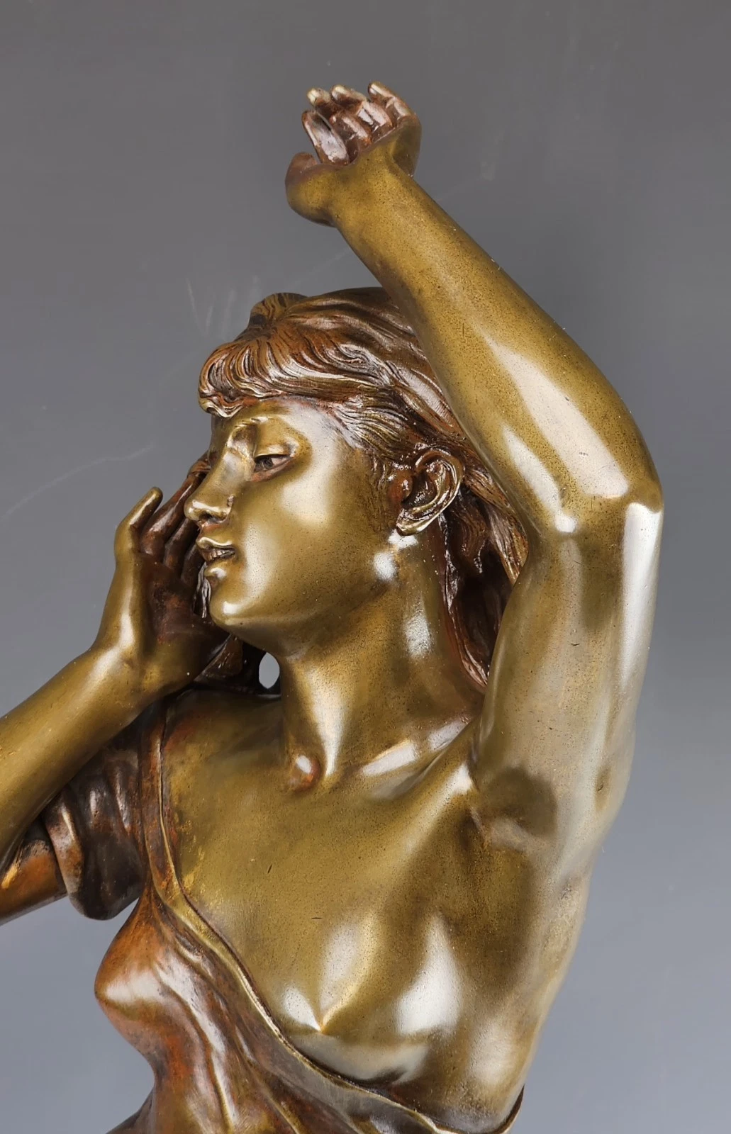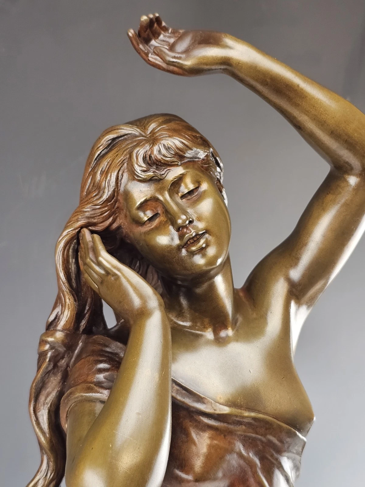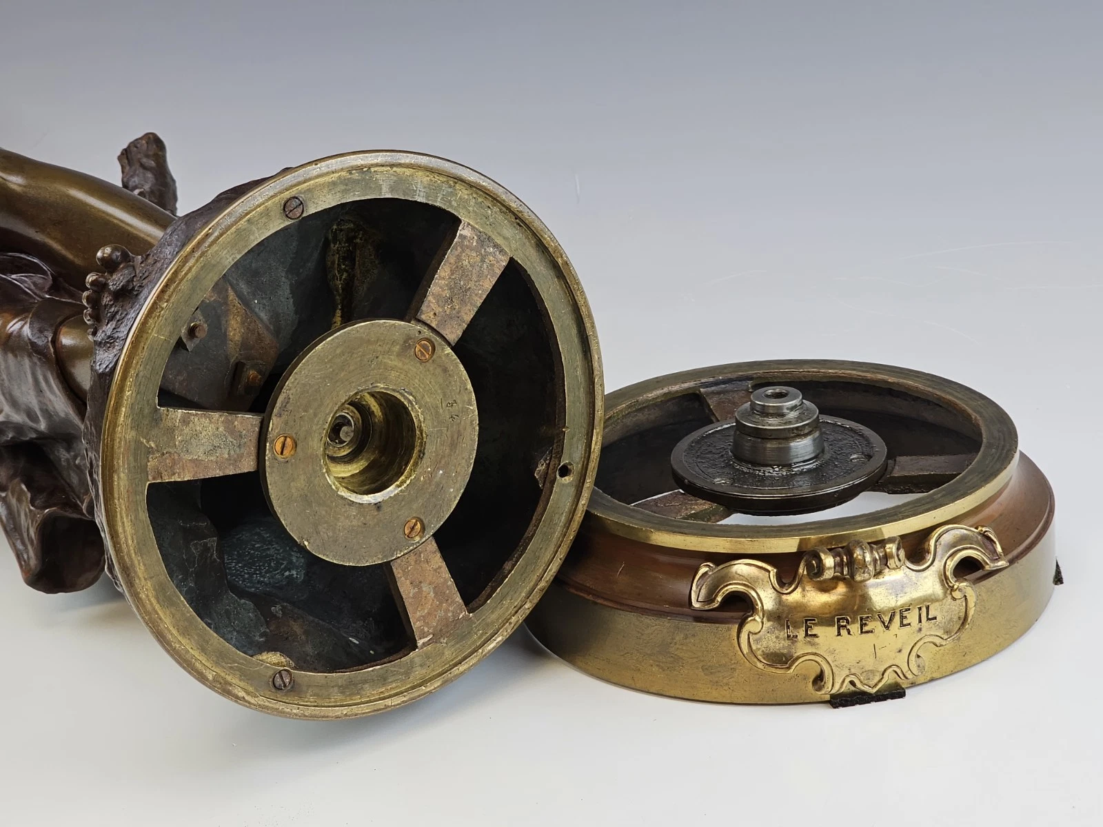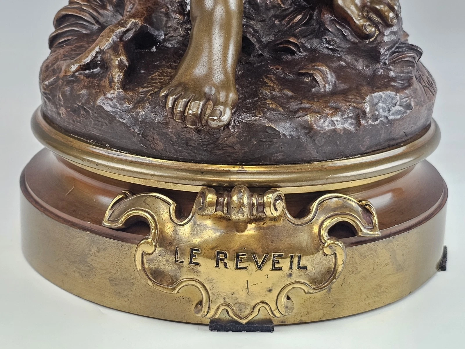 The sculpture with title plaque " Le Reveil " on gilt bronze rotating base.