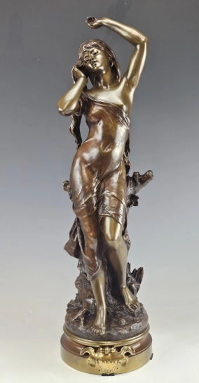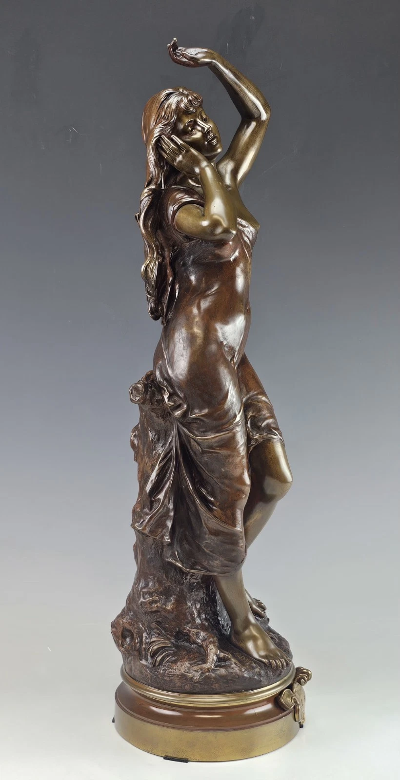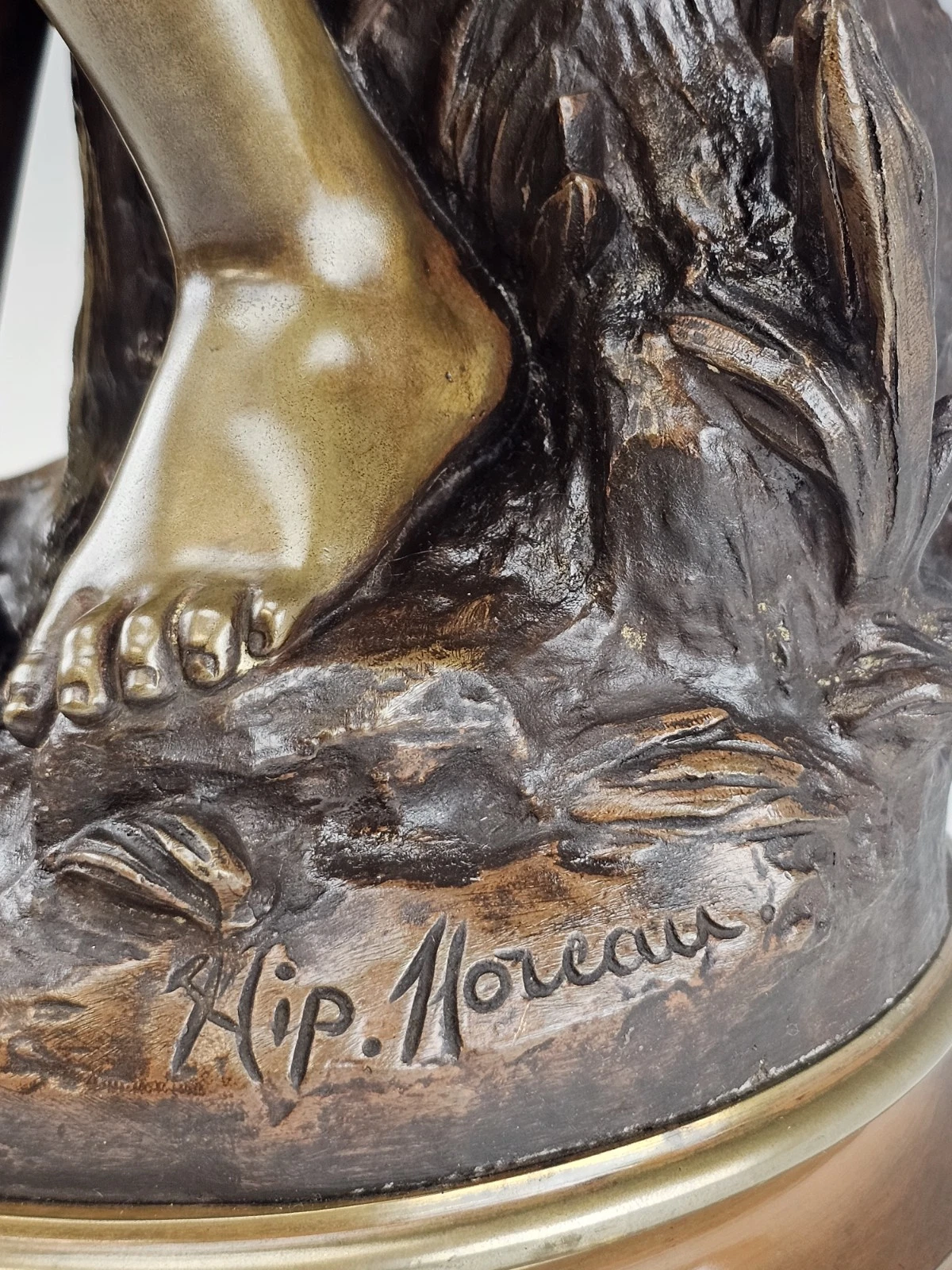 Beautiful Large 19th-century French Patinated and Gilt Bronze Sculpture by Hippolyte François Moreau ( 1832 - 1927 )