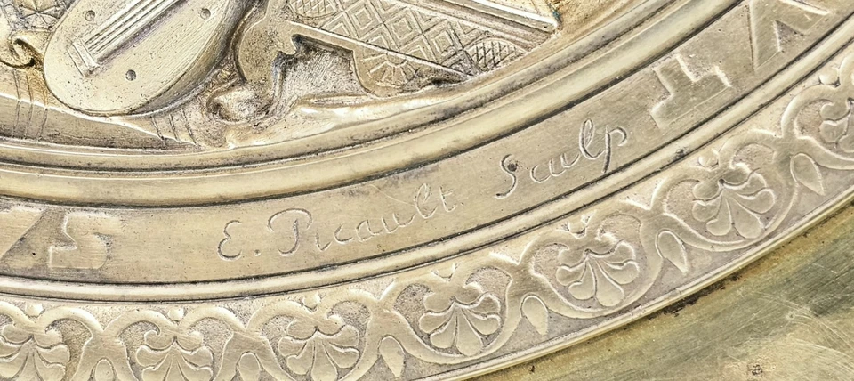 Signed “E. Picault Sculp.” and bearing additional period foundry marks (“HP”) to each leg.