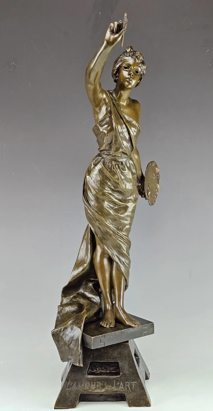 The sculpture signed on the base " L'Amour de L'Art " ( The Love of Art ).