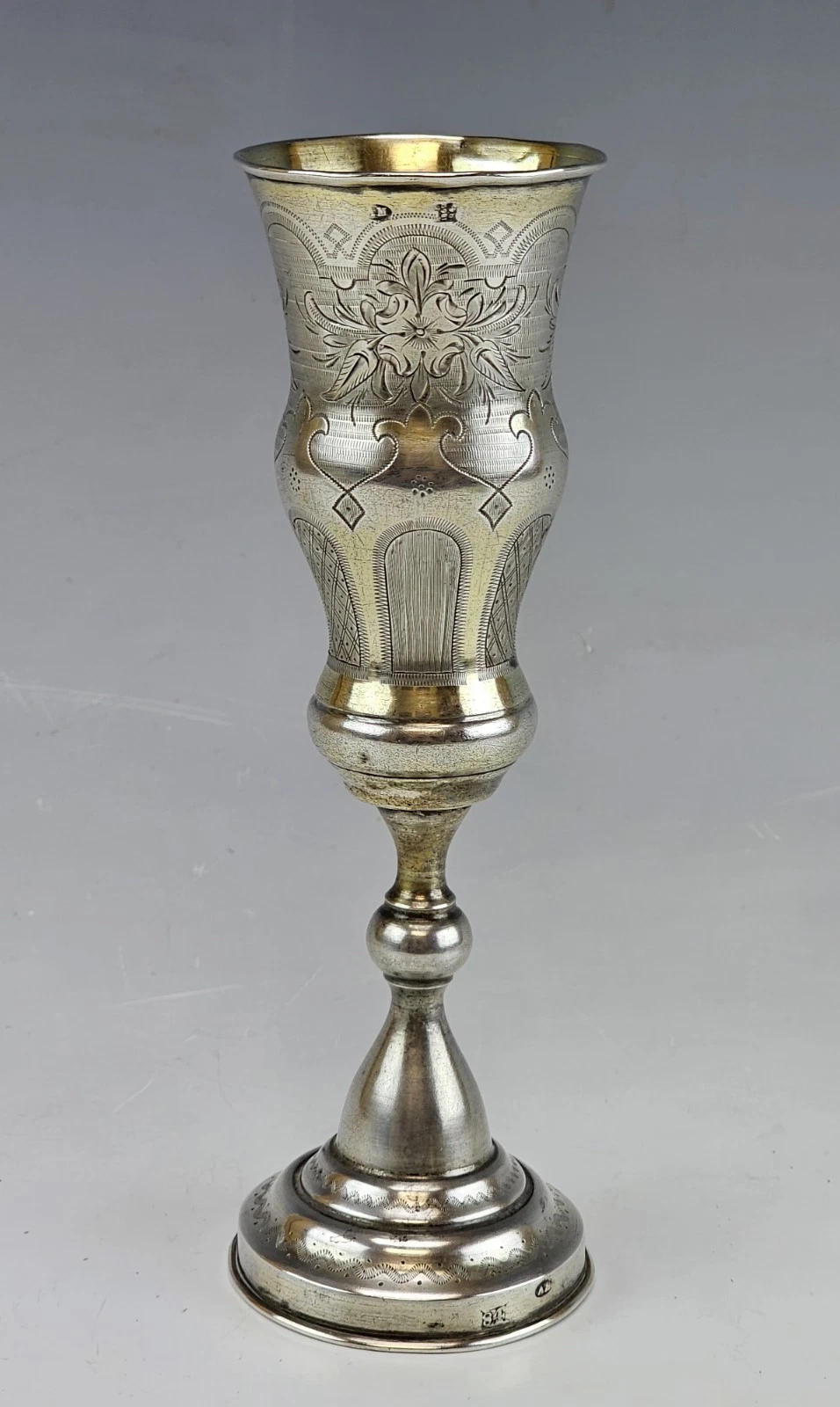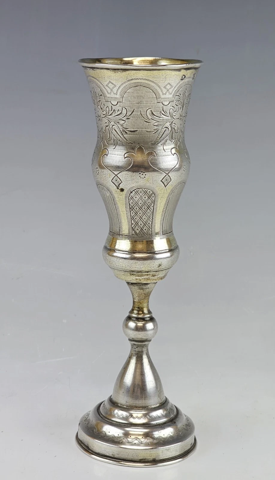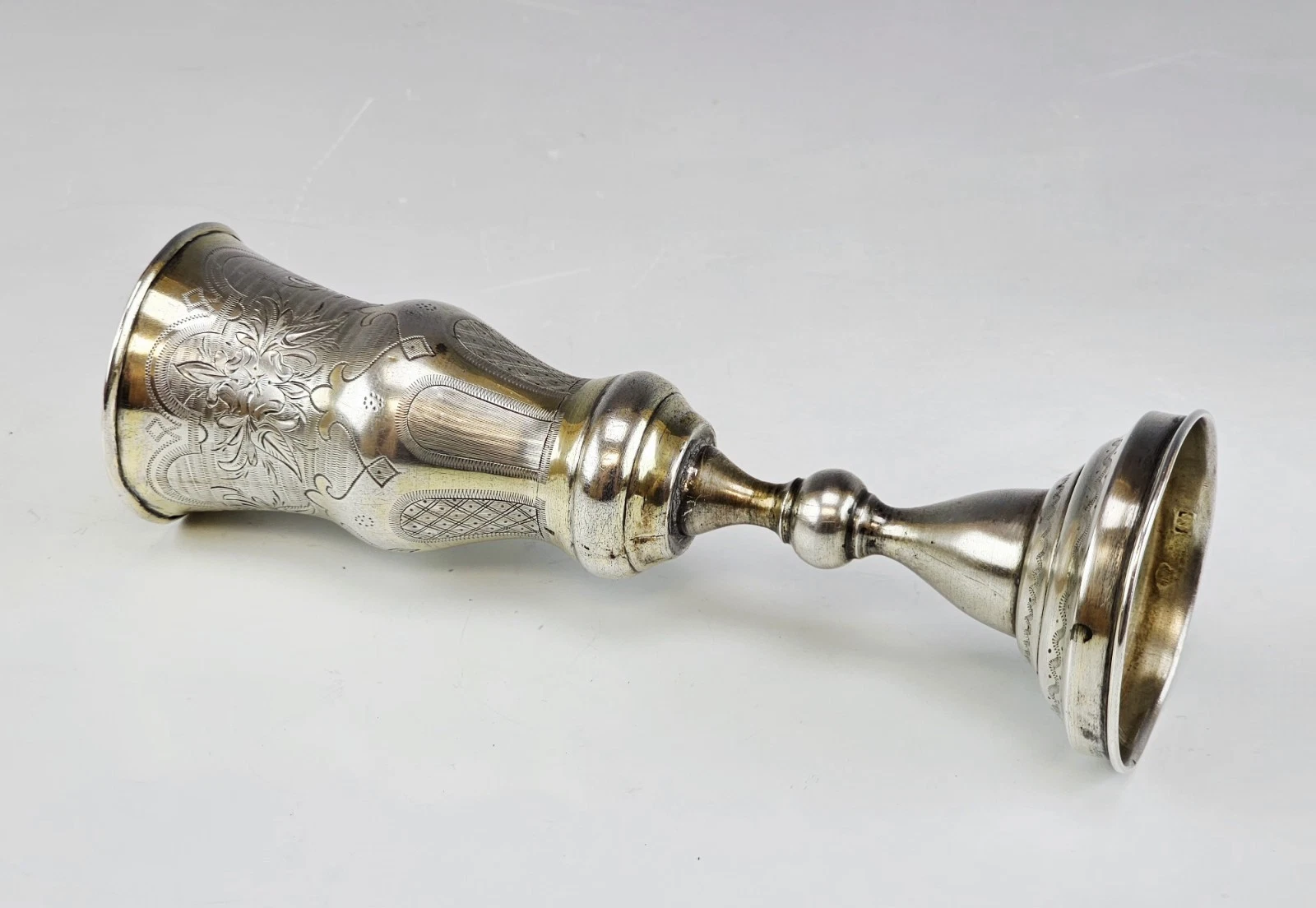 Large 19th-century Russian Silver Engraved Flute, Cup