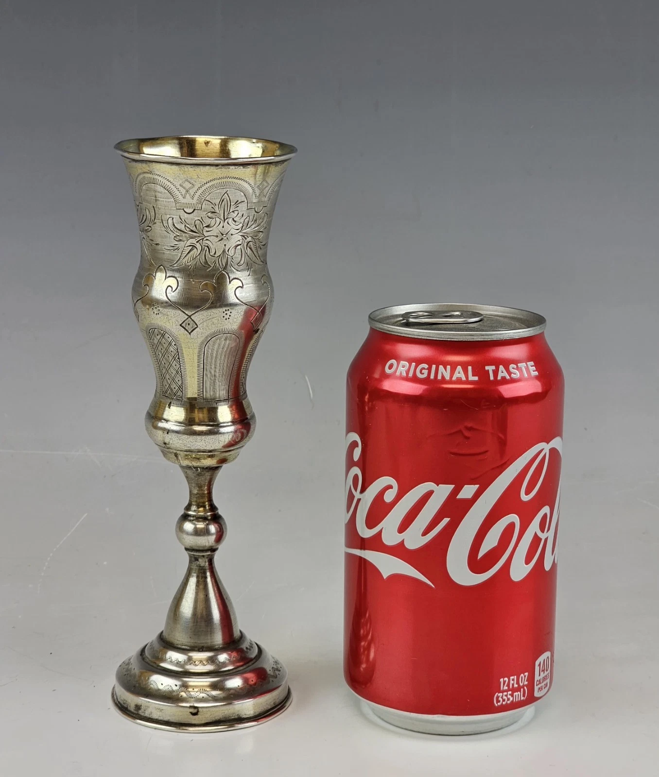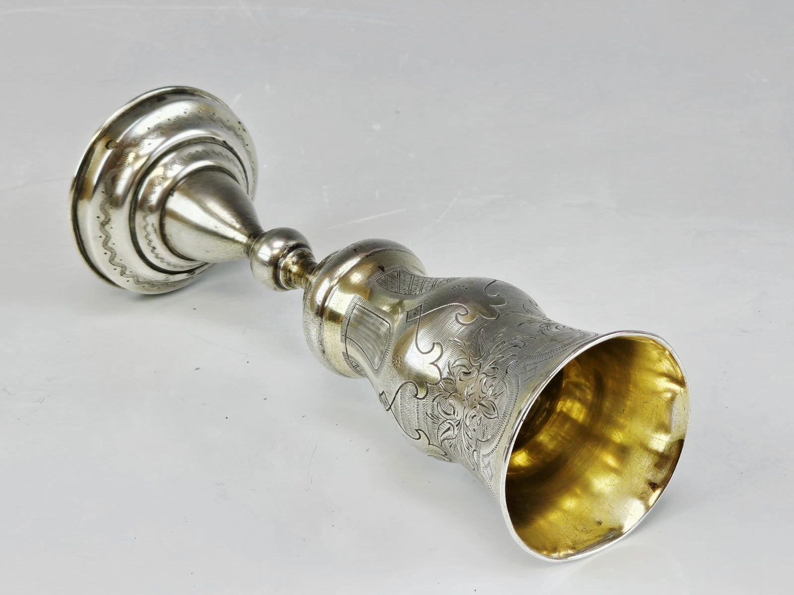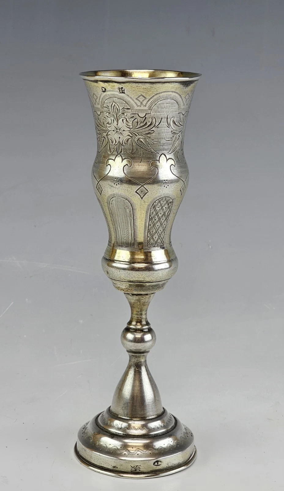 Large 19th-century Russian Silver Engraved Flute, Cup