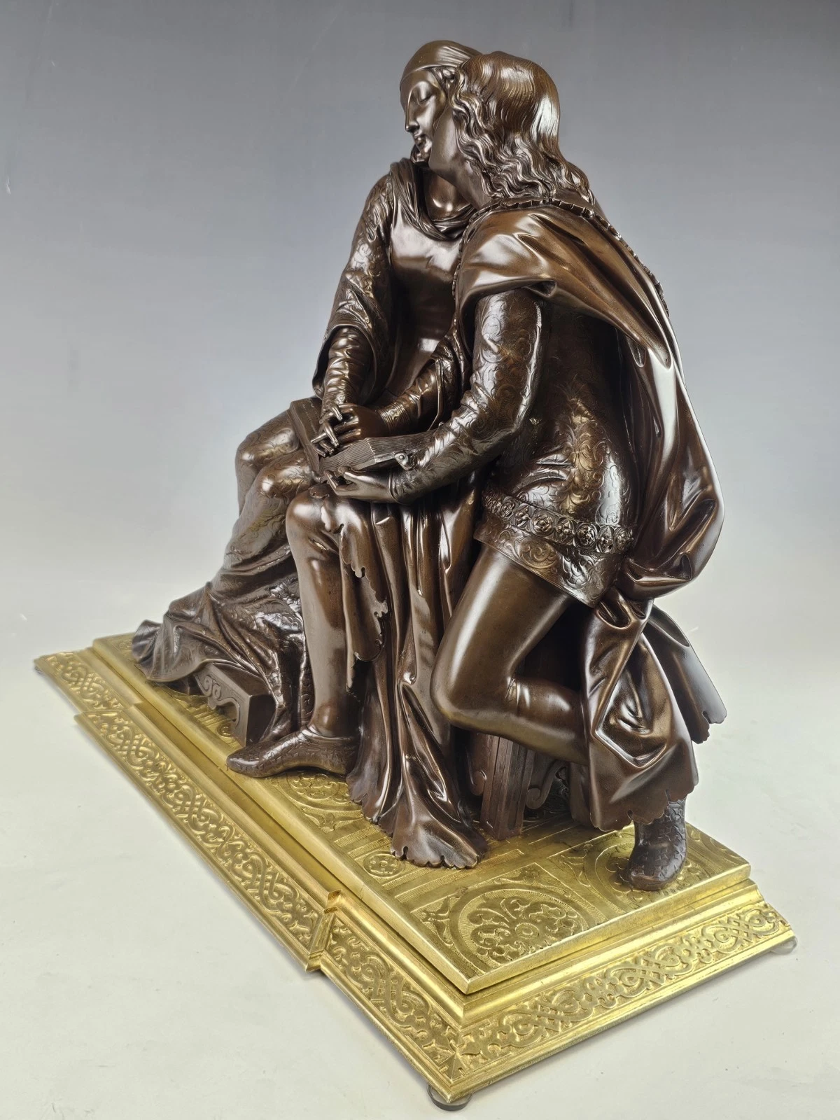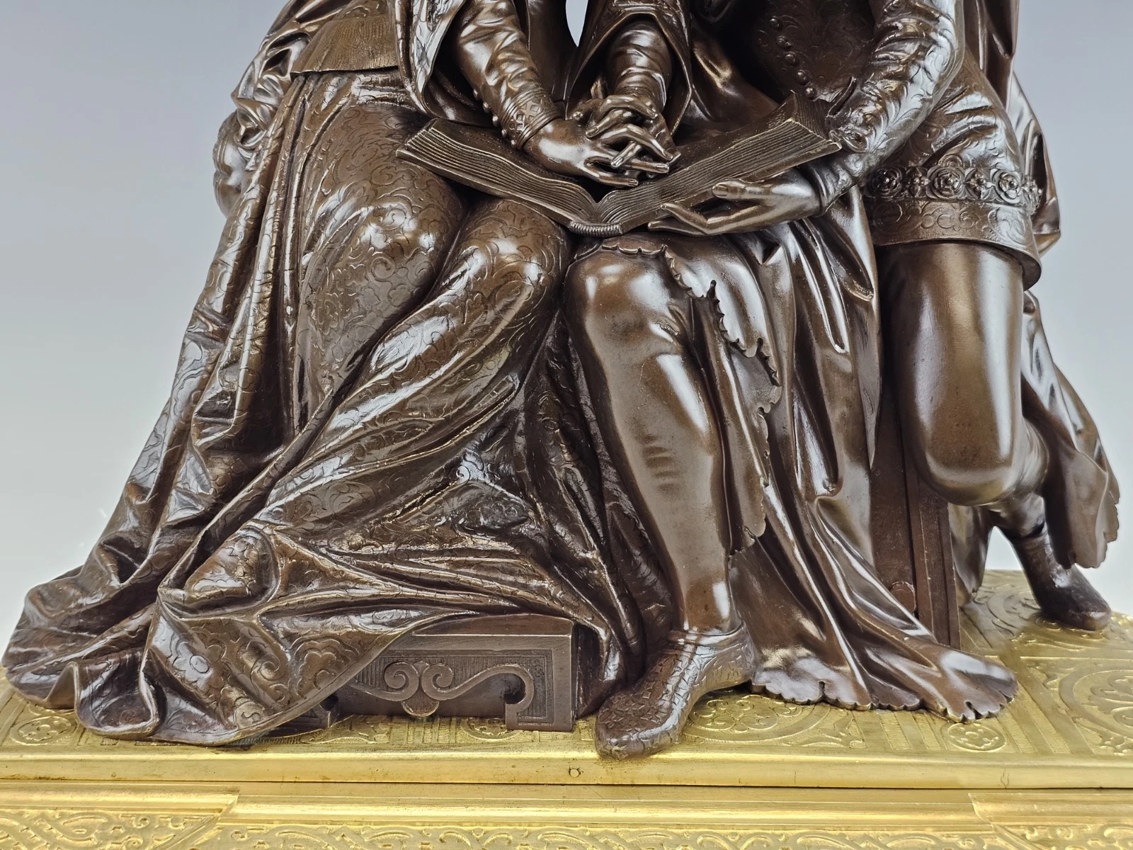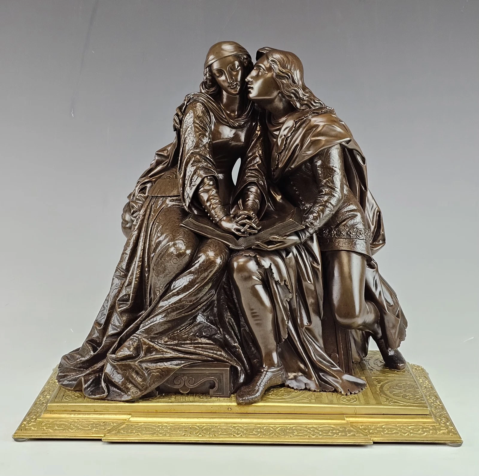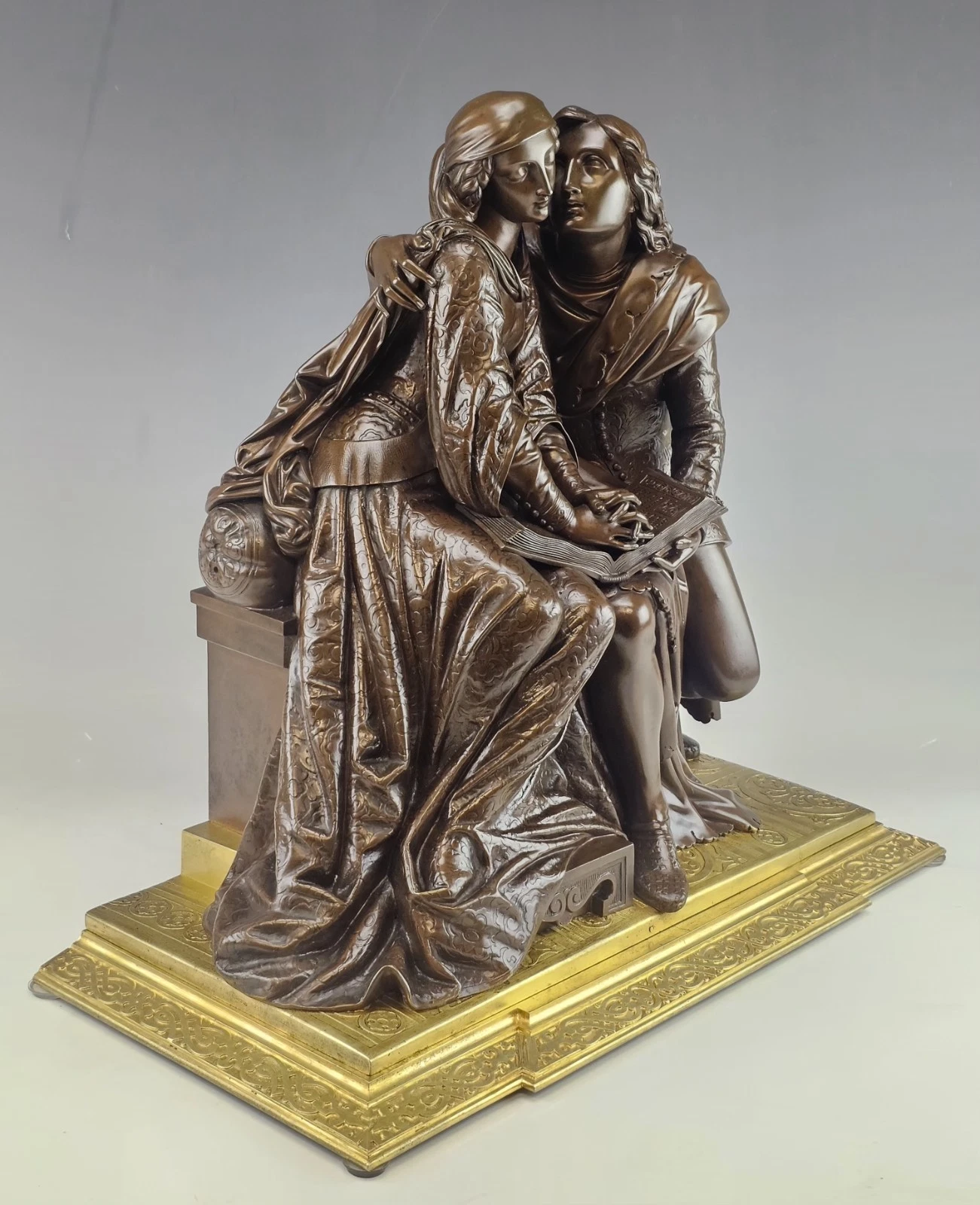Stunning 19th-century French Patinated and Gilt Bronze Sculpture of Romantic Couple.