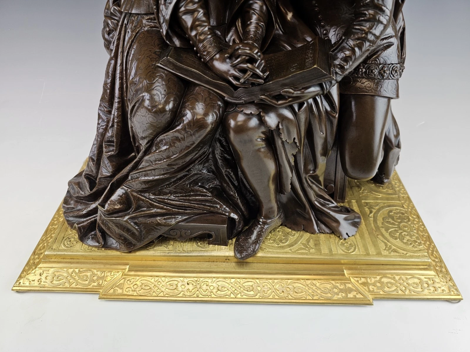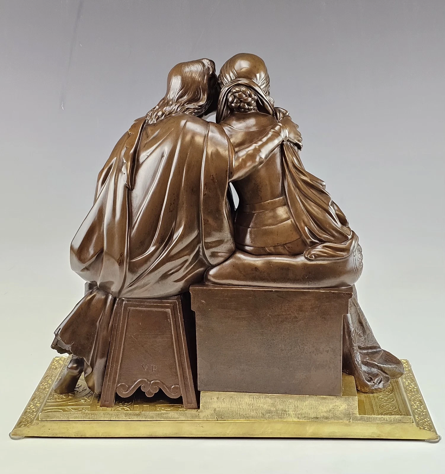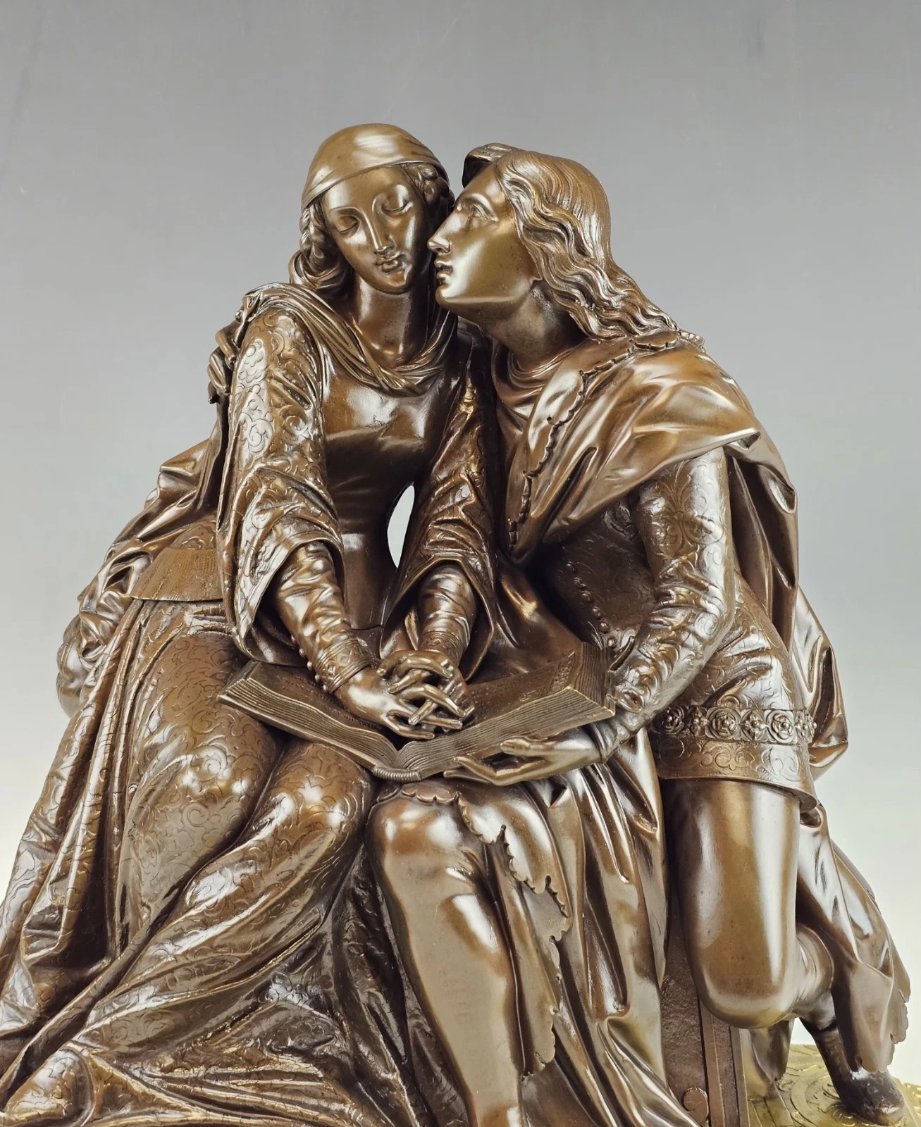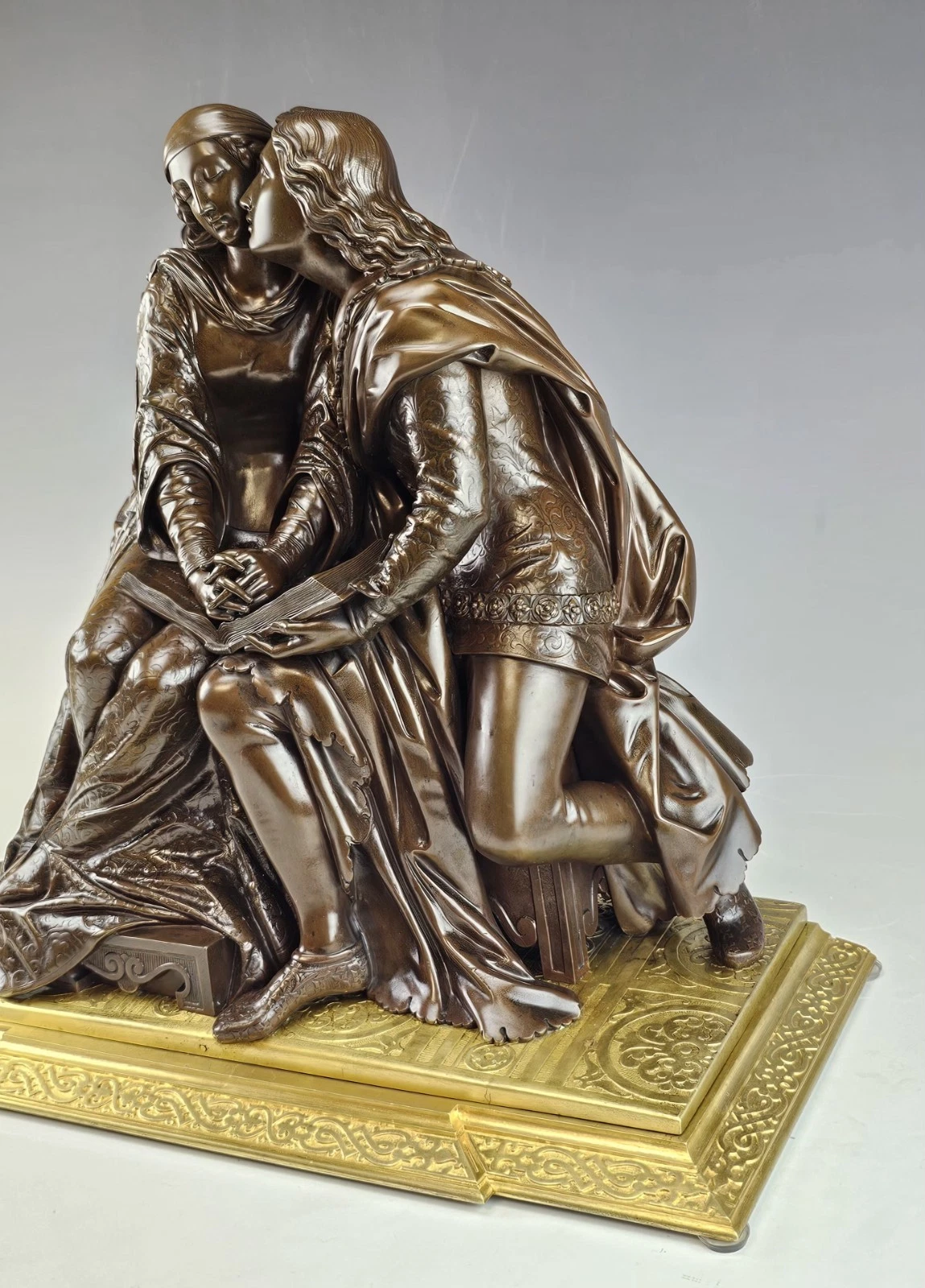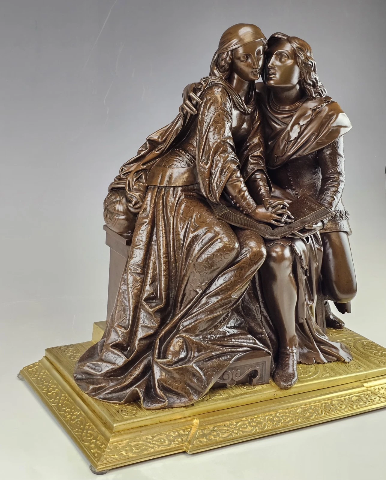 Stunning 19th-century French Patinated and Gilt Bronze Sculpture of Romantic Couple.