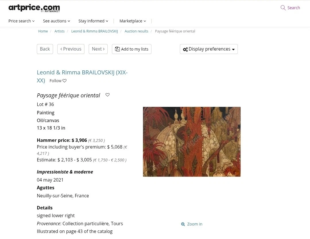 The painting was purchased at Aquttes auction, France, May 4, 2021 for $5068.