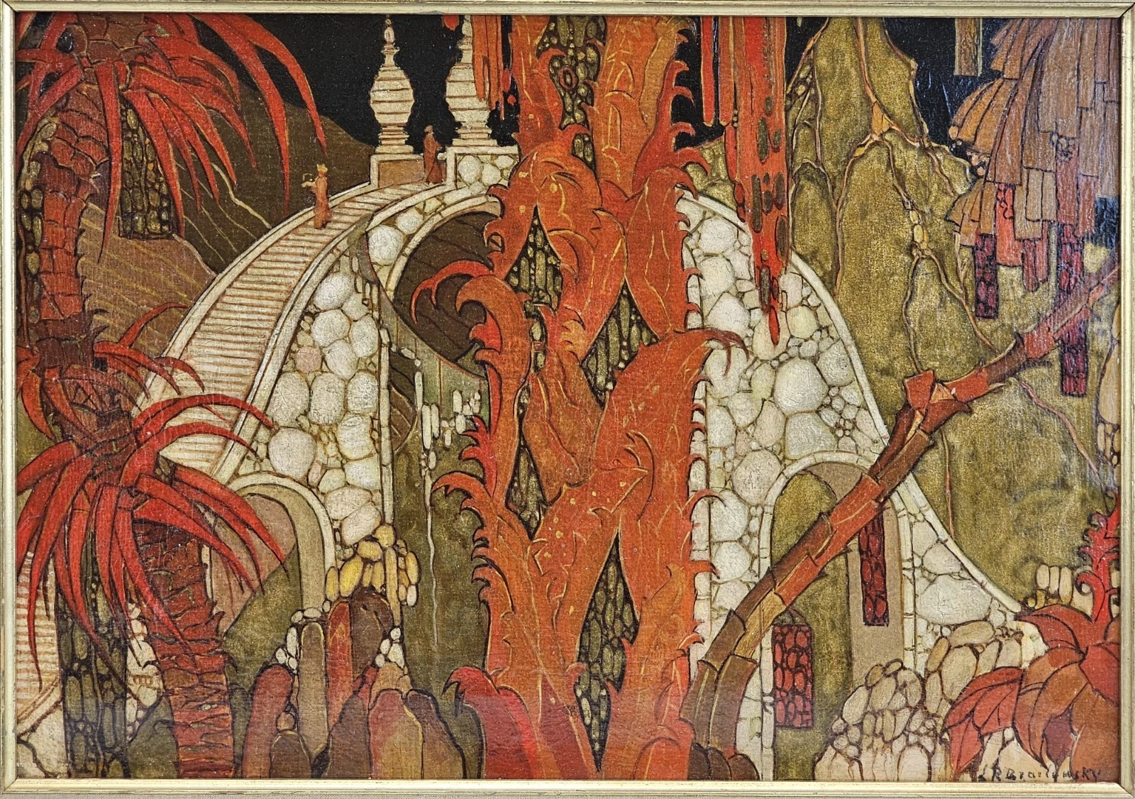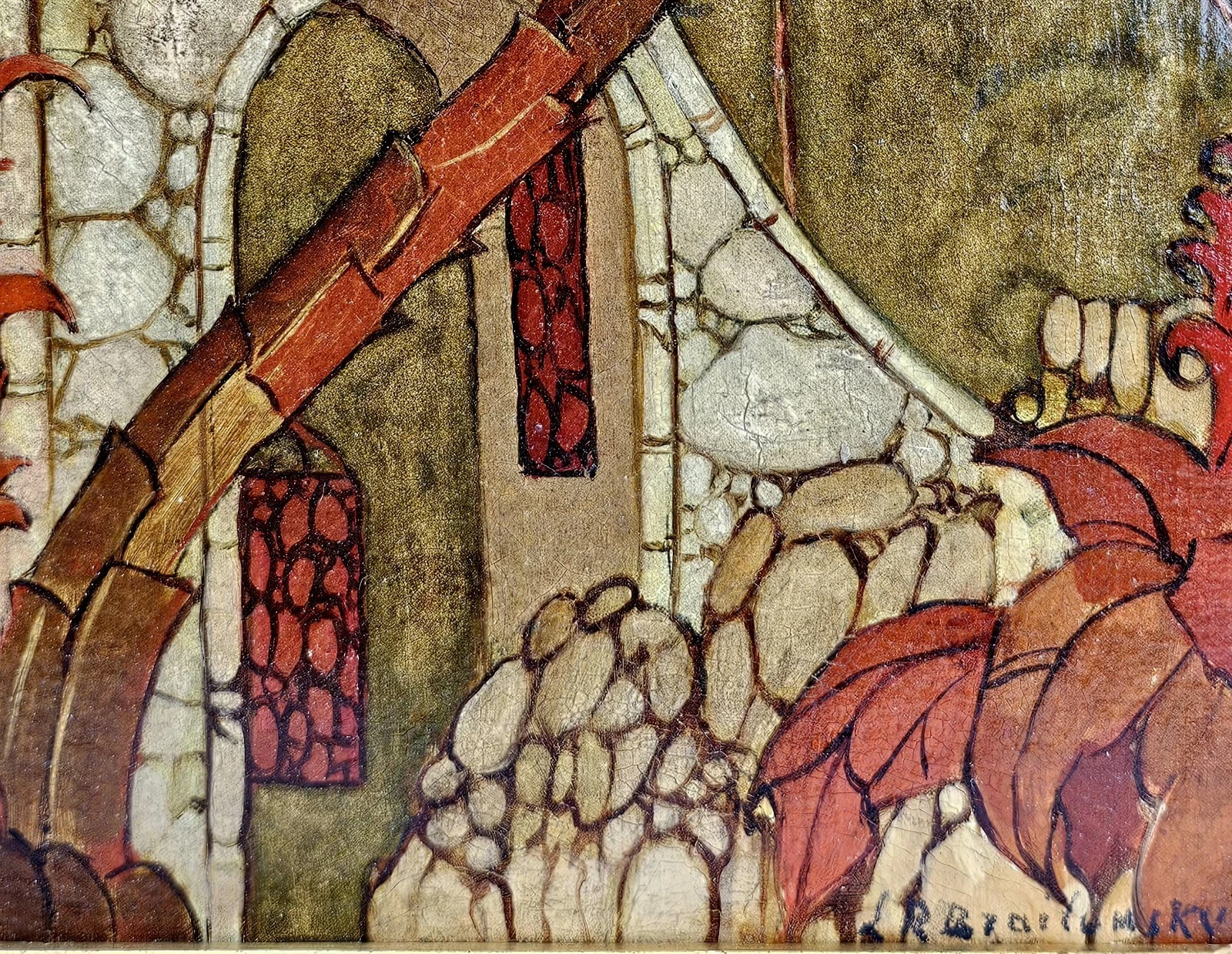 The painting depicts theatrical stage design. Signed lower right L. Brailowsky.