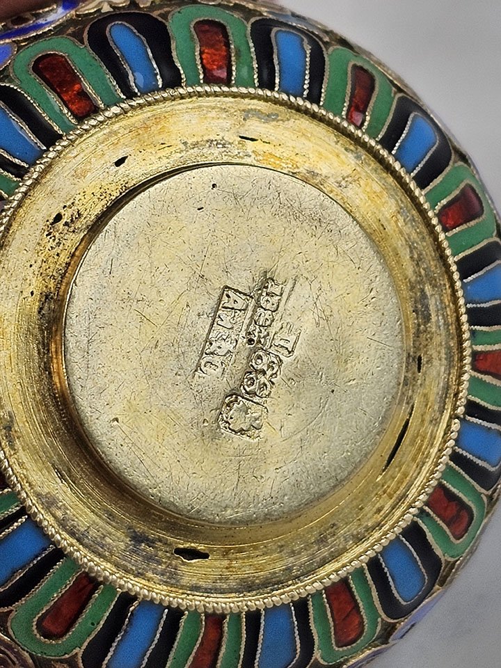 Hallmarked Moscow, 1883, 88 silver standards, with Cyrillic maker’s mark AIF.O. (possibly Aleksandr and Fedor Ovchinnikov)