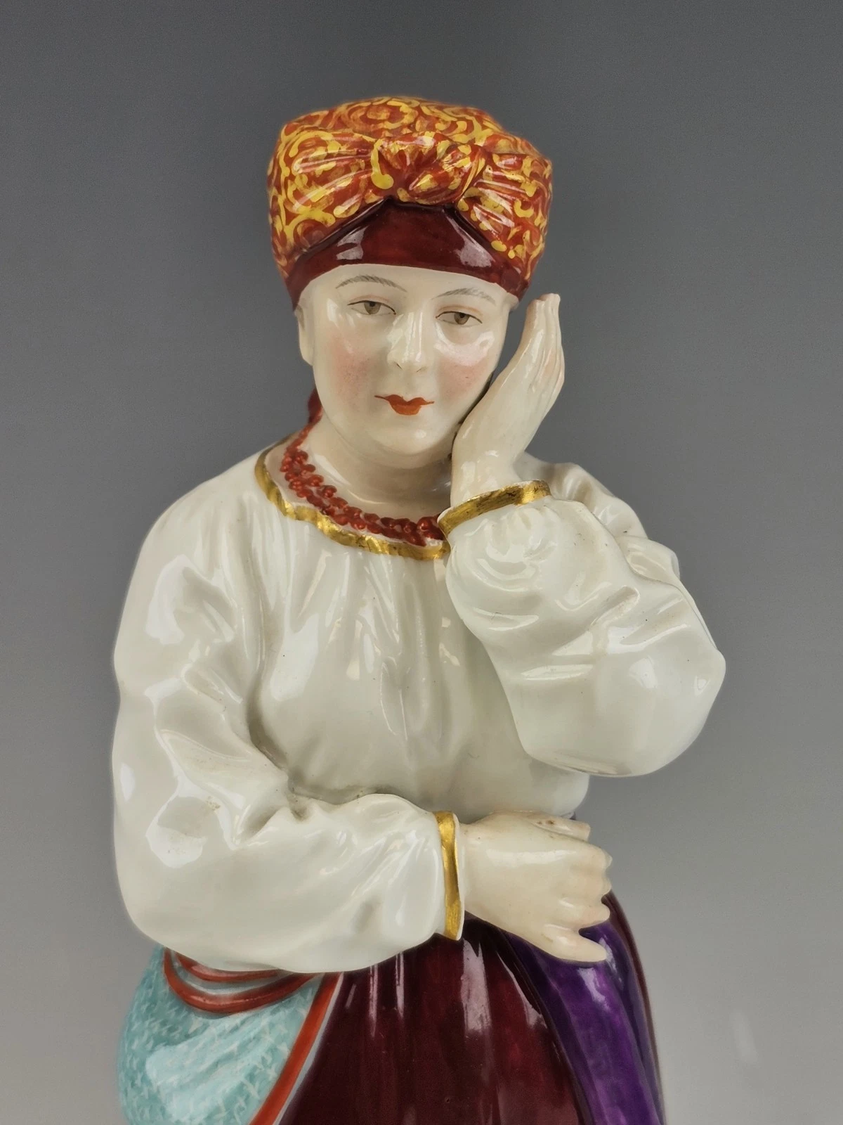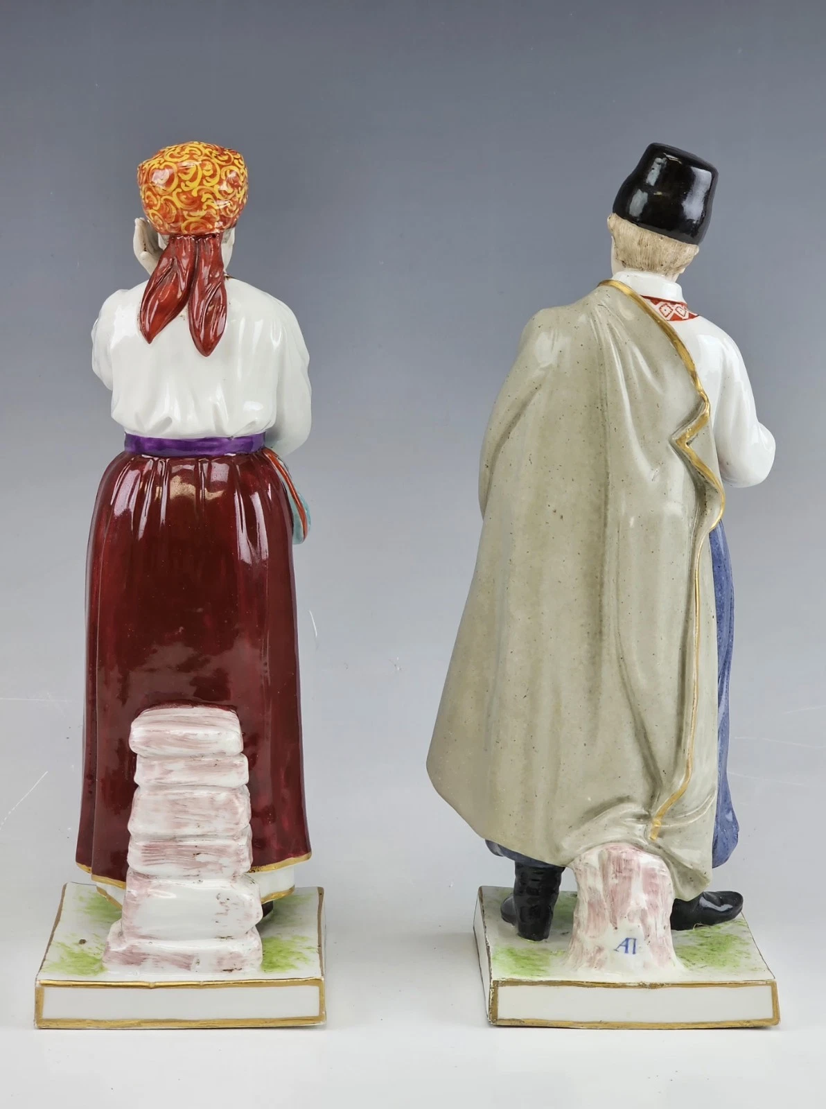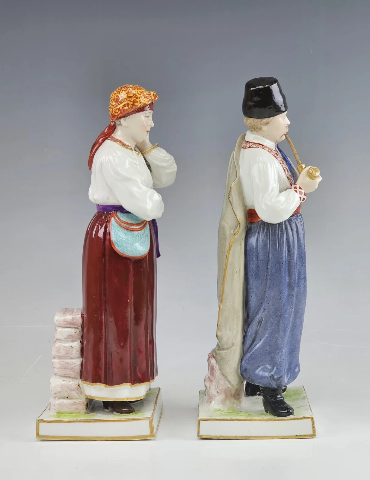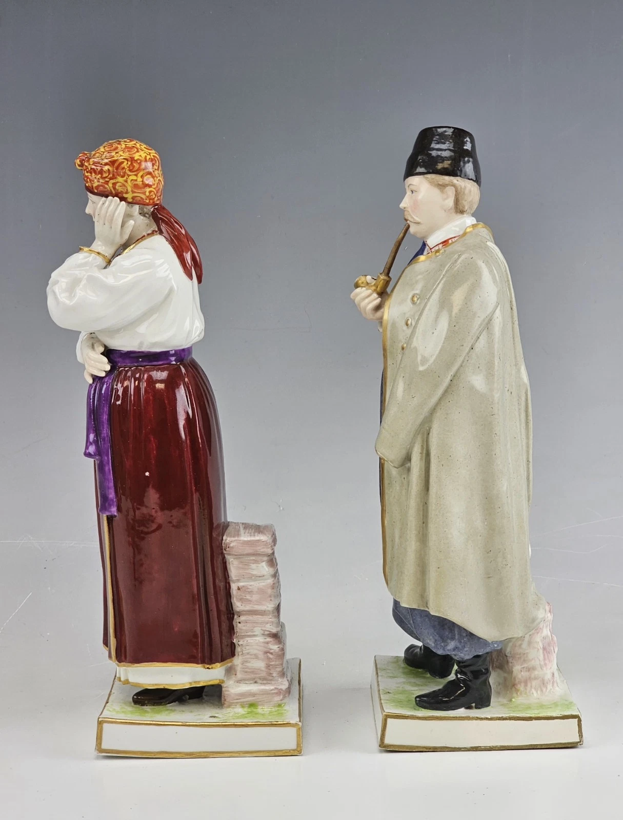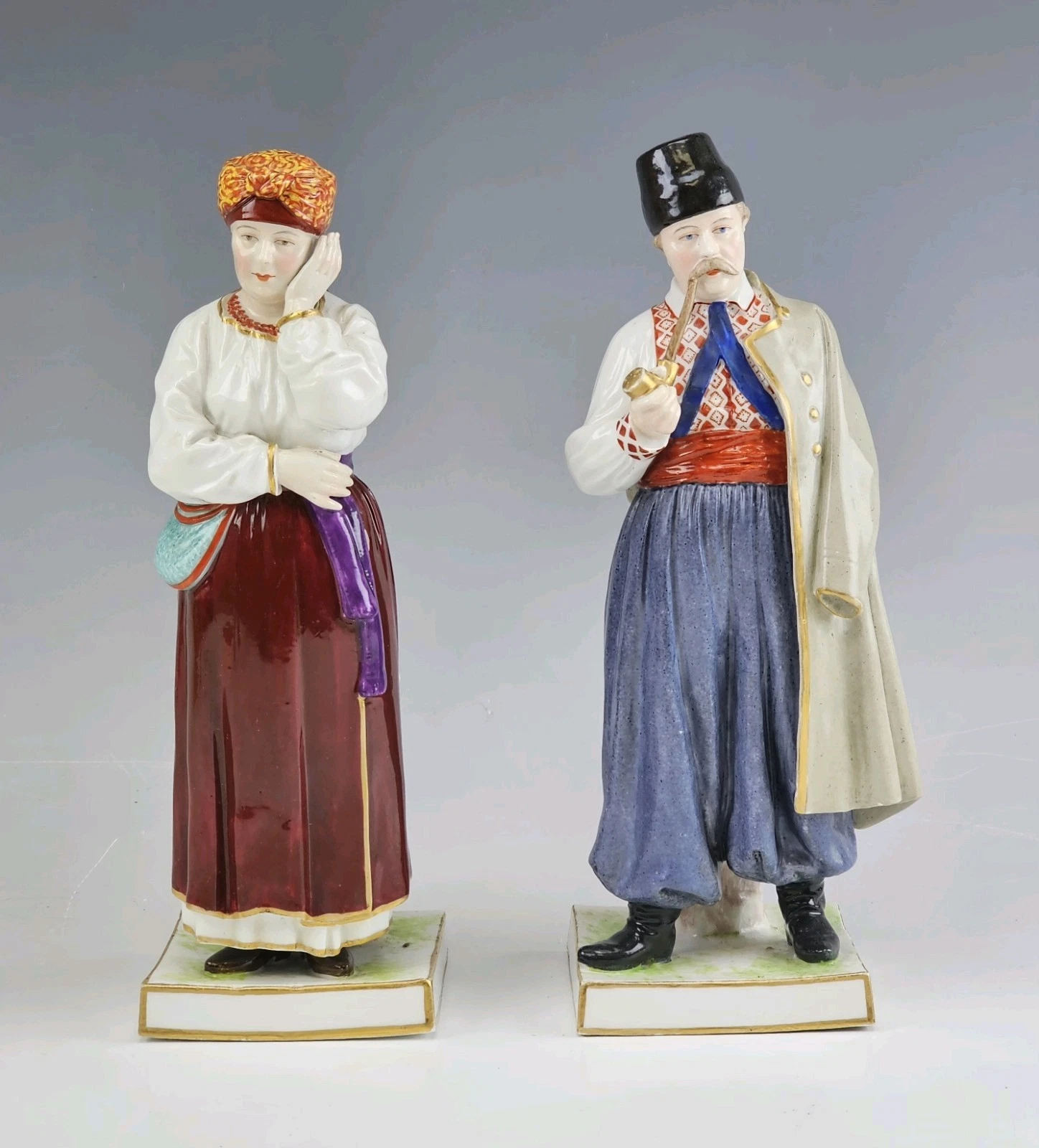 Rare 19th-century Russian Popov Manufactory Pair Porcelain Figurines.
