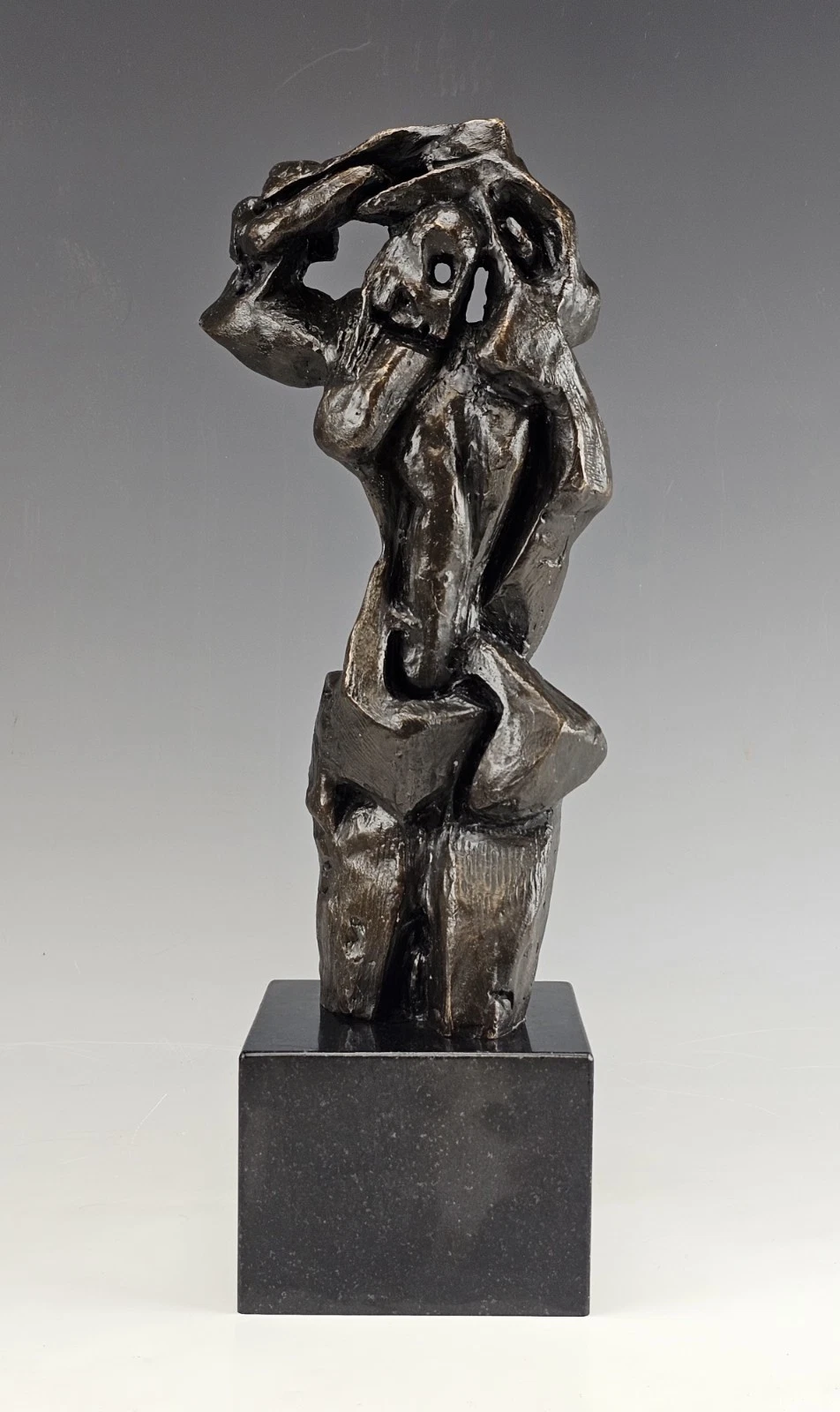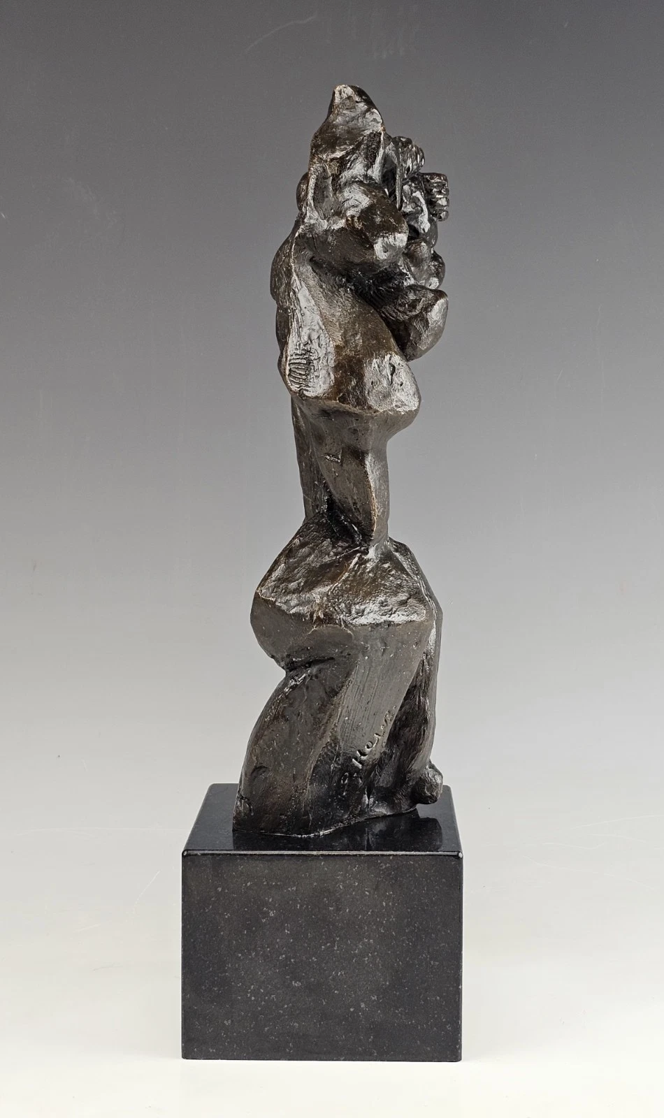 Dark brown patina. On black marble base.