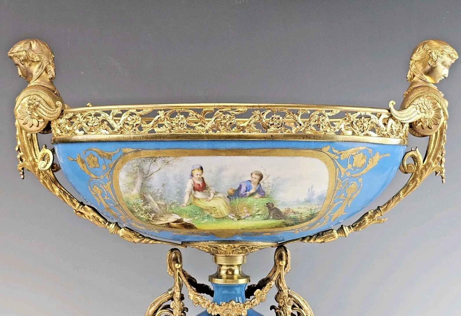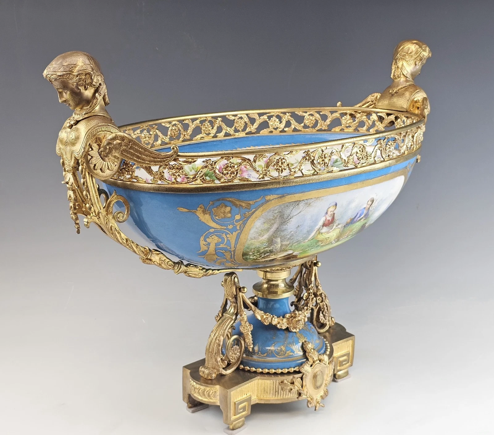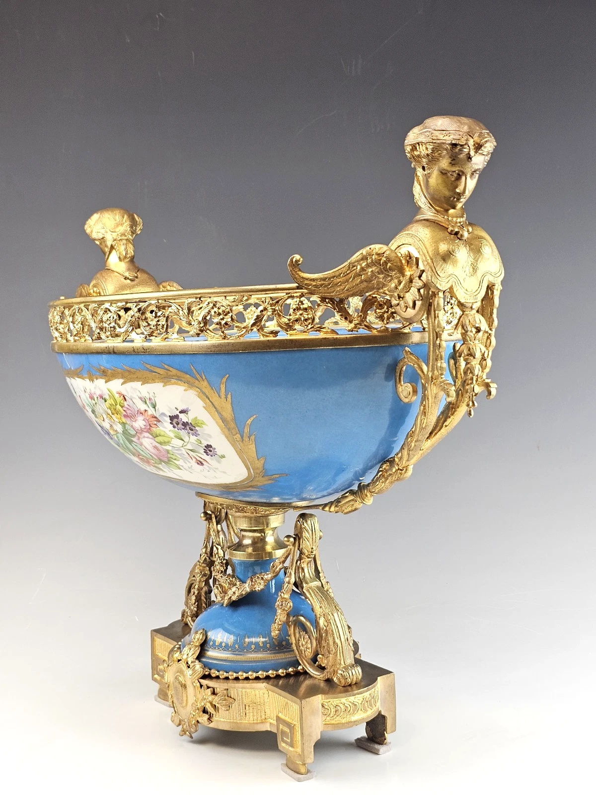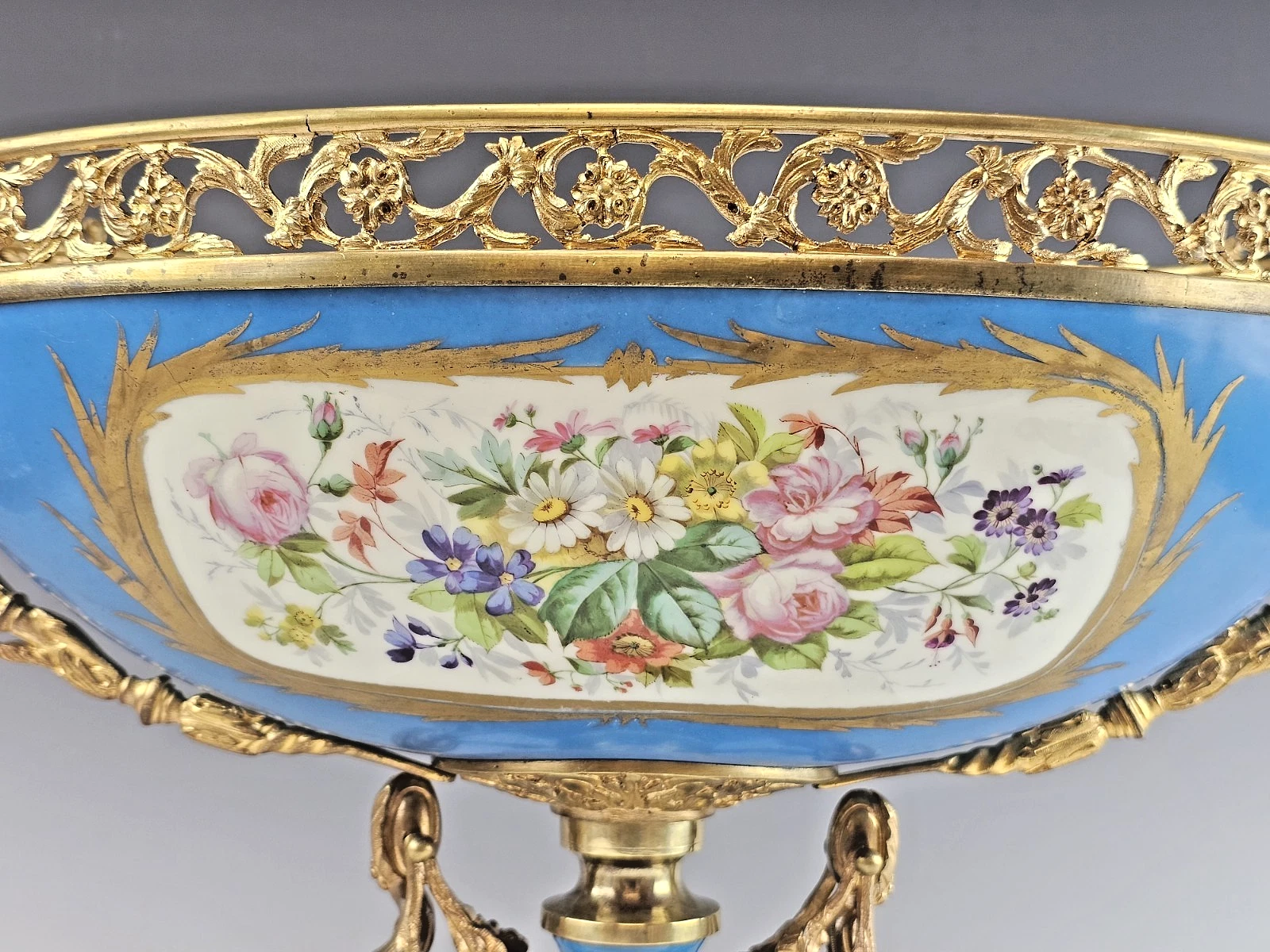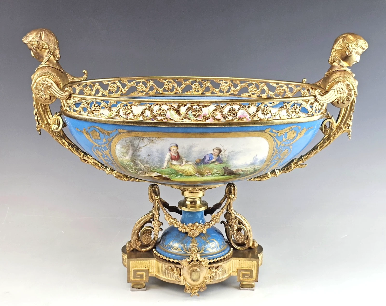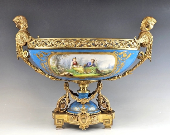 Stunning Very Large 19th-century French Sevres Porcelain and Gilt Bronze Centerpiece, Bowl.