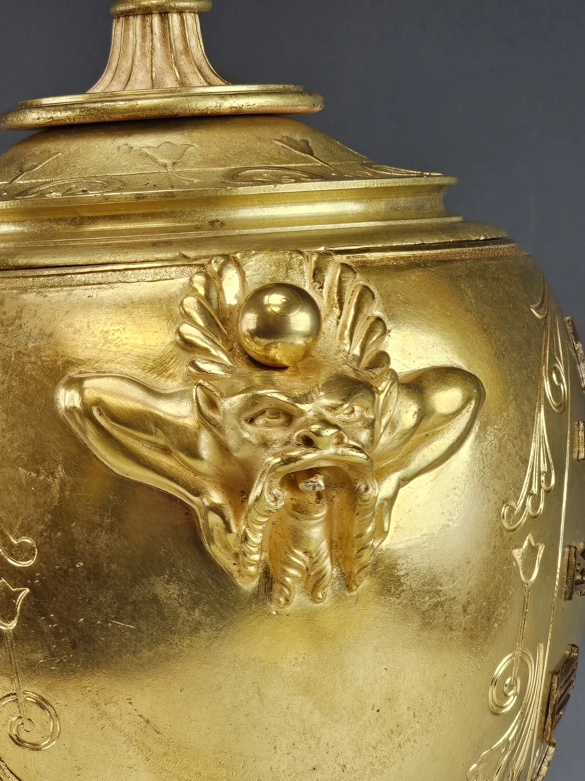The urn with twin handles in a form of methalogical mask.