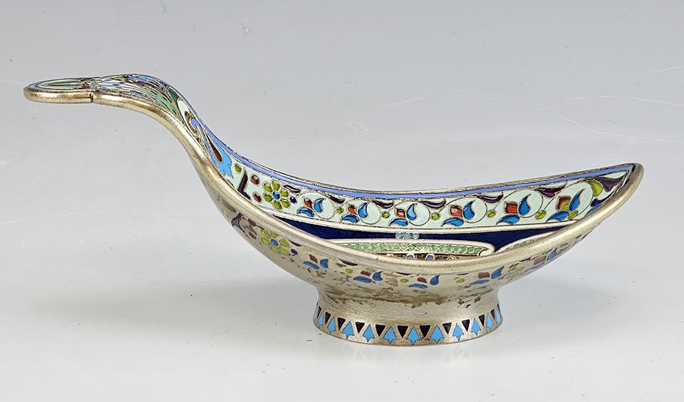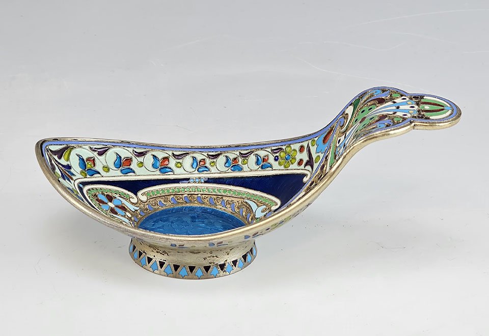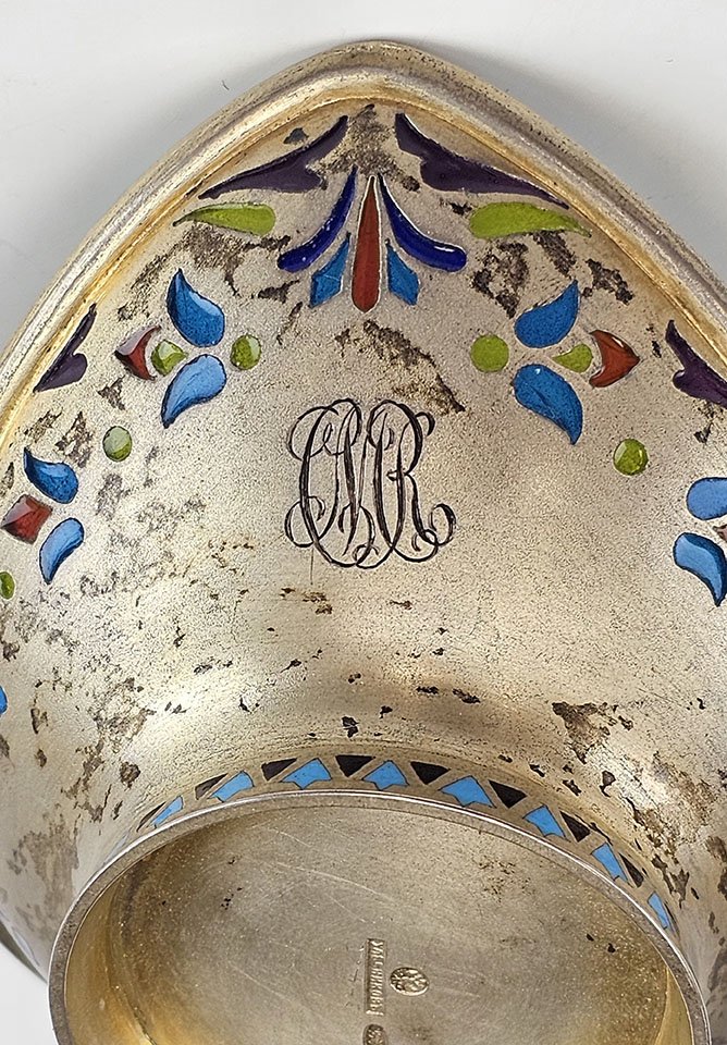 Museum-Quality Imperial Russian Silver-Gilt Kovsh by Ivan Khlebnikov – Rare Combination of Enamels