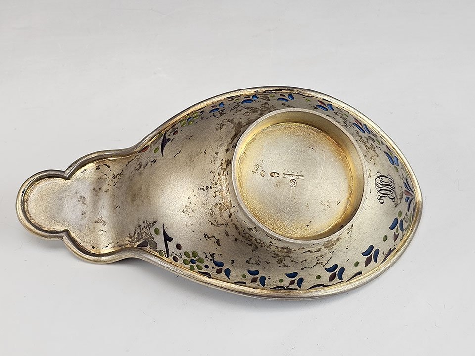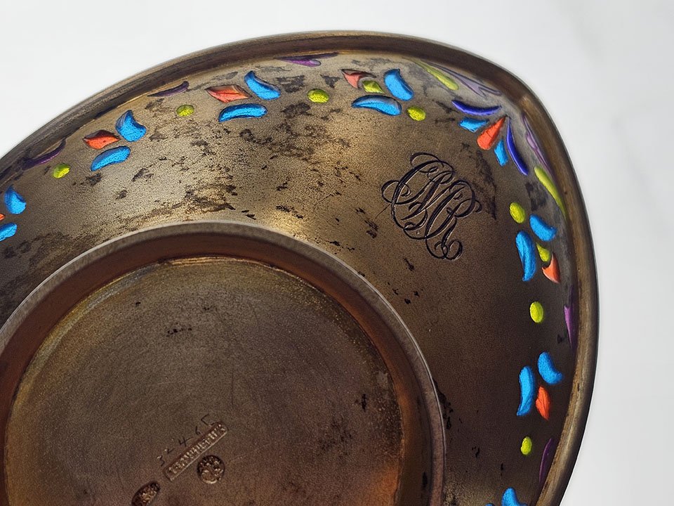 The interior is fully gilded, providing a luxurious contrast to the rich enamels. Such a rare combination of techniques makes this a highly sought-after collector’s piece.