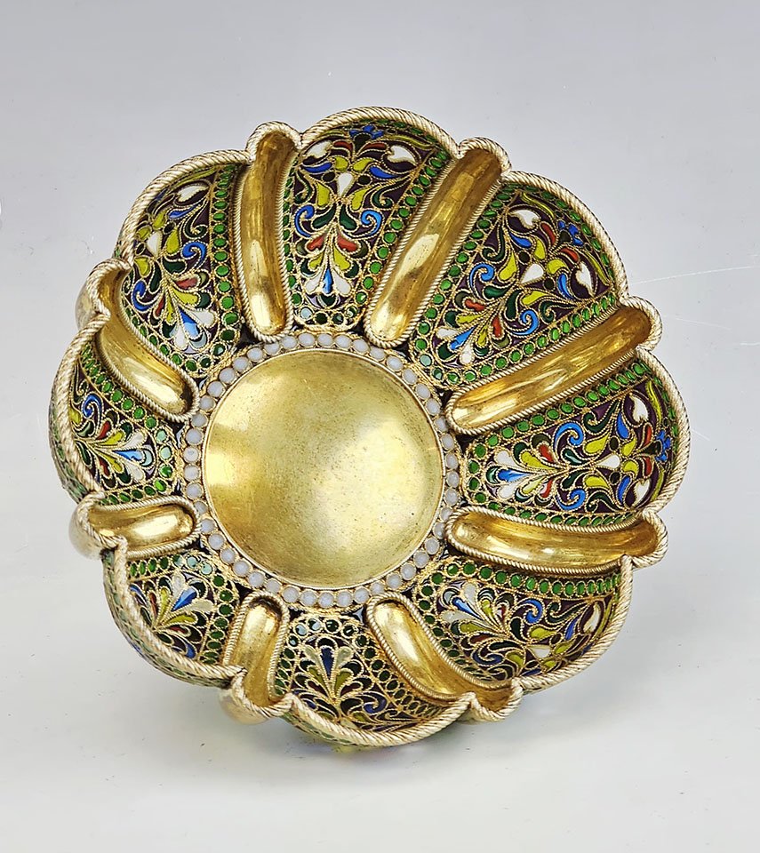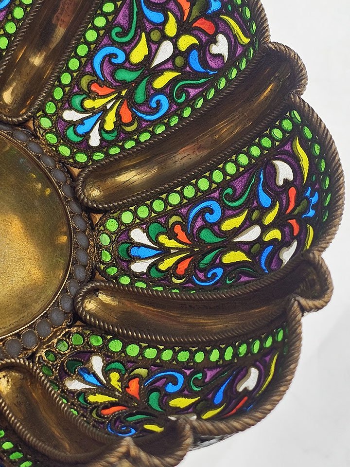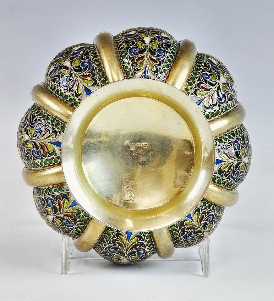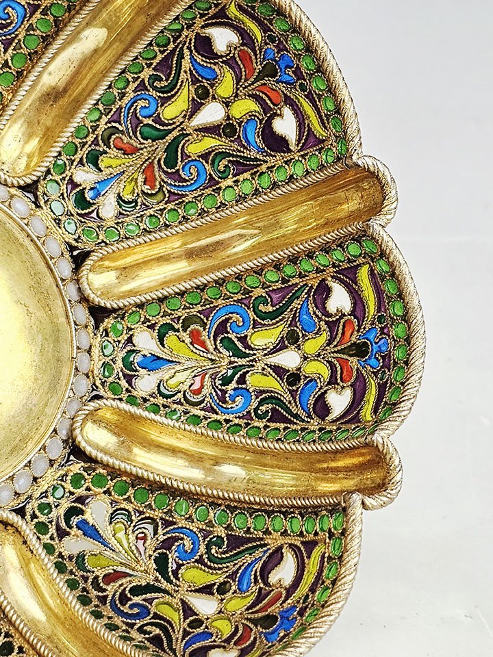 A striking example of high-quality Imperial Russian enamel craftsmanship from one of the most prestigious Moscow workshops of the 19th century.